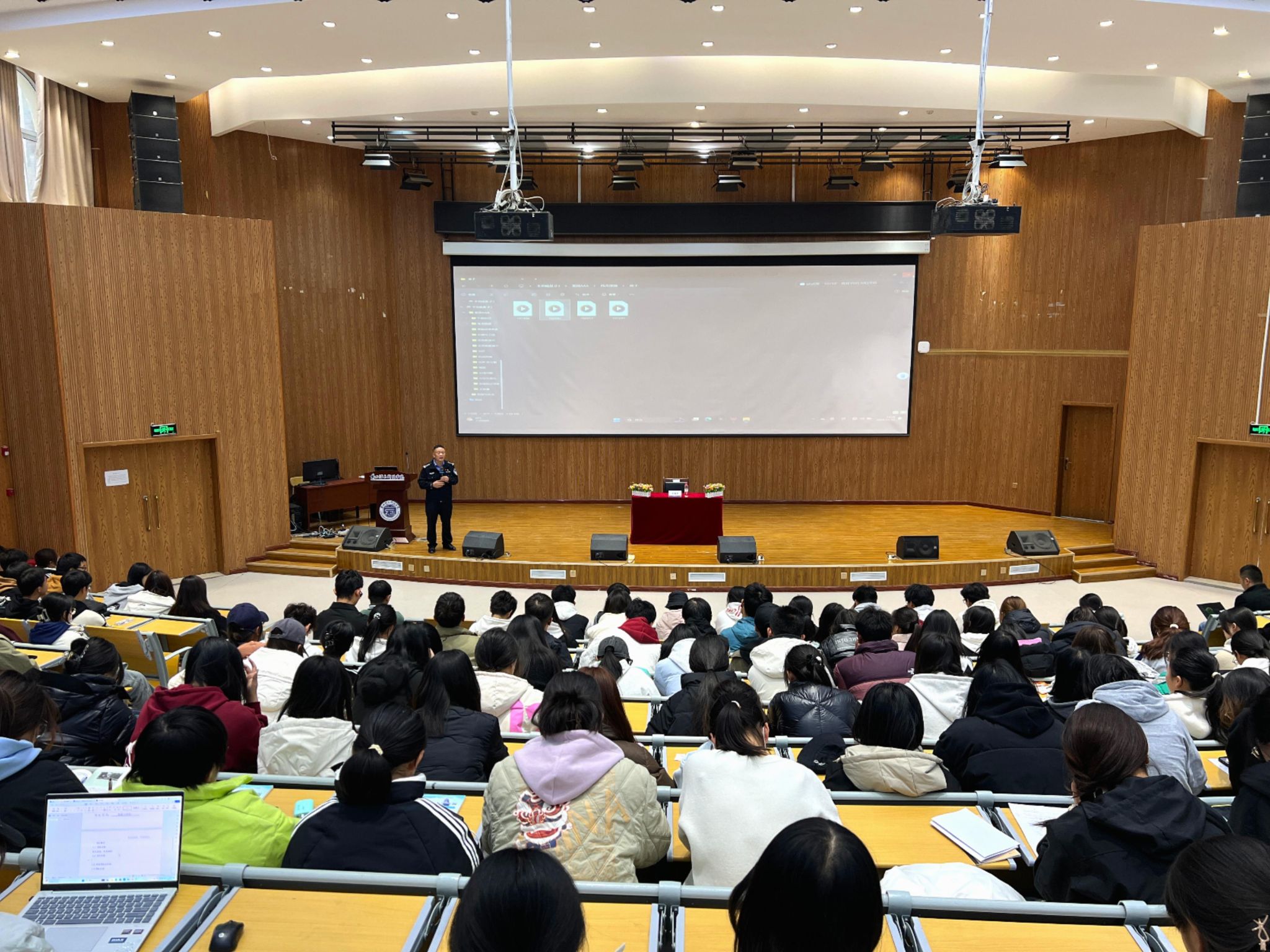 为深入贯彻总体国家安全观,增强师生国家安全意识,提高维护国家安全的能力,11月12日,开元集团网站邀请兰州新区公安局国内安全保卫大队大队长王道文来校开展“聚焦国家安全,守护国家未来”国家安全教育主题讲座。此次讲座吸引了400多名师生踊跃参与,现场气氛热烈。