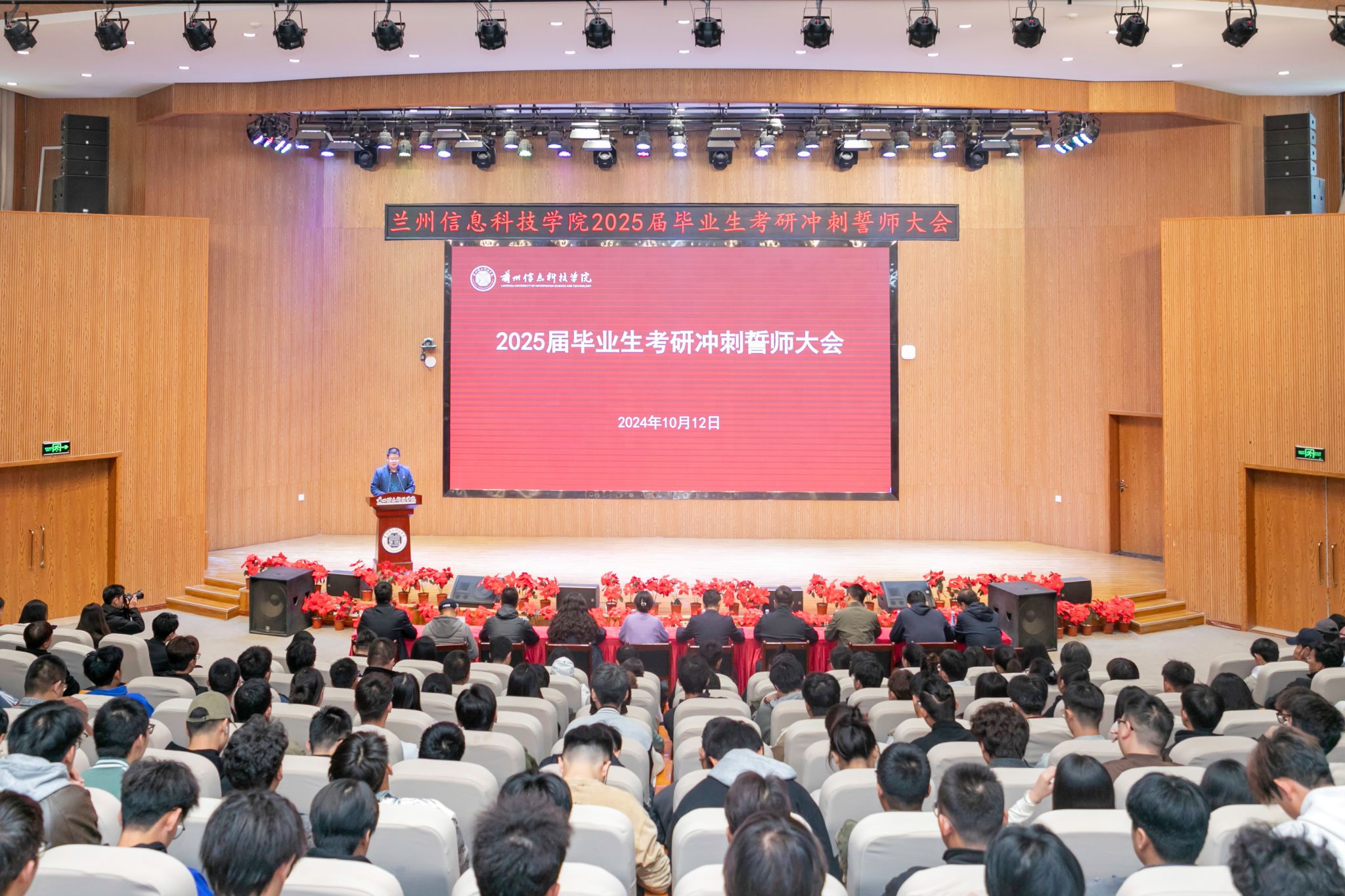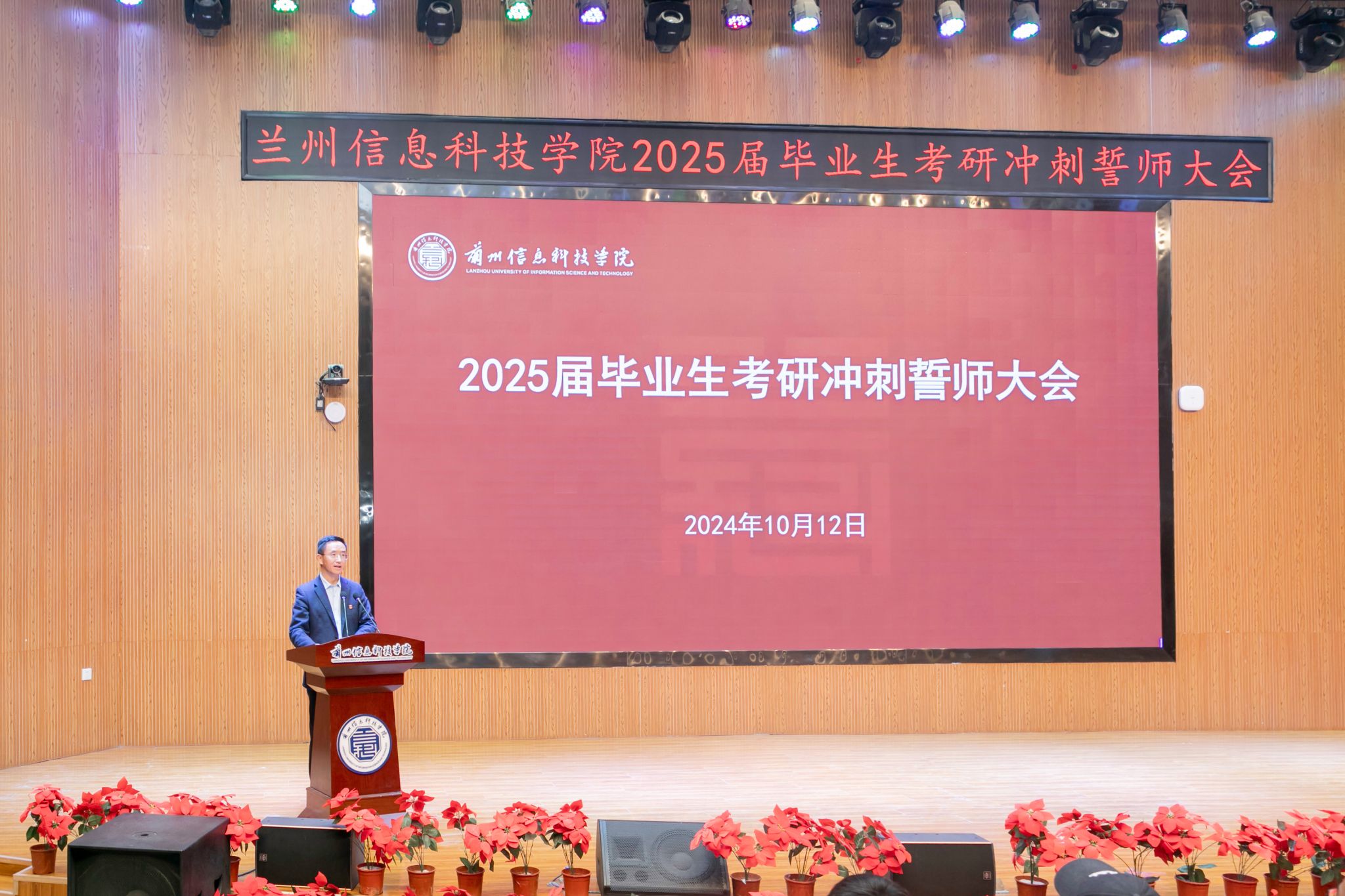 2025年全国硕士研究生招生考试网上预报名已经有序开展。10月12日,在距离2025届毕业生考研倒计时还有70天时,开元集团网站在2号报告厅举行2025届毕业生考研冲刺誓师大会,进一步提高同学们备考意识,激发同学们备战斗志。校长助理朱明敏、各学生发展中心主任、2025届毕业生辅导员、考研指导教师代表、2025届考研学生,2024届考取硕士研究生的朱鸿鹂校友参会。