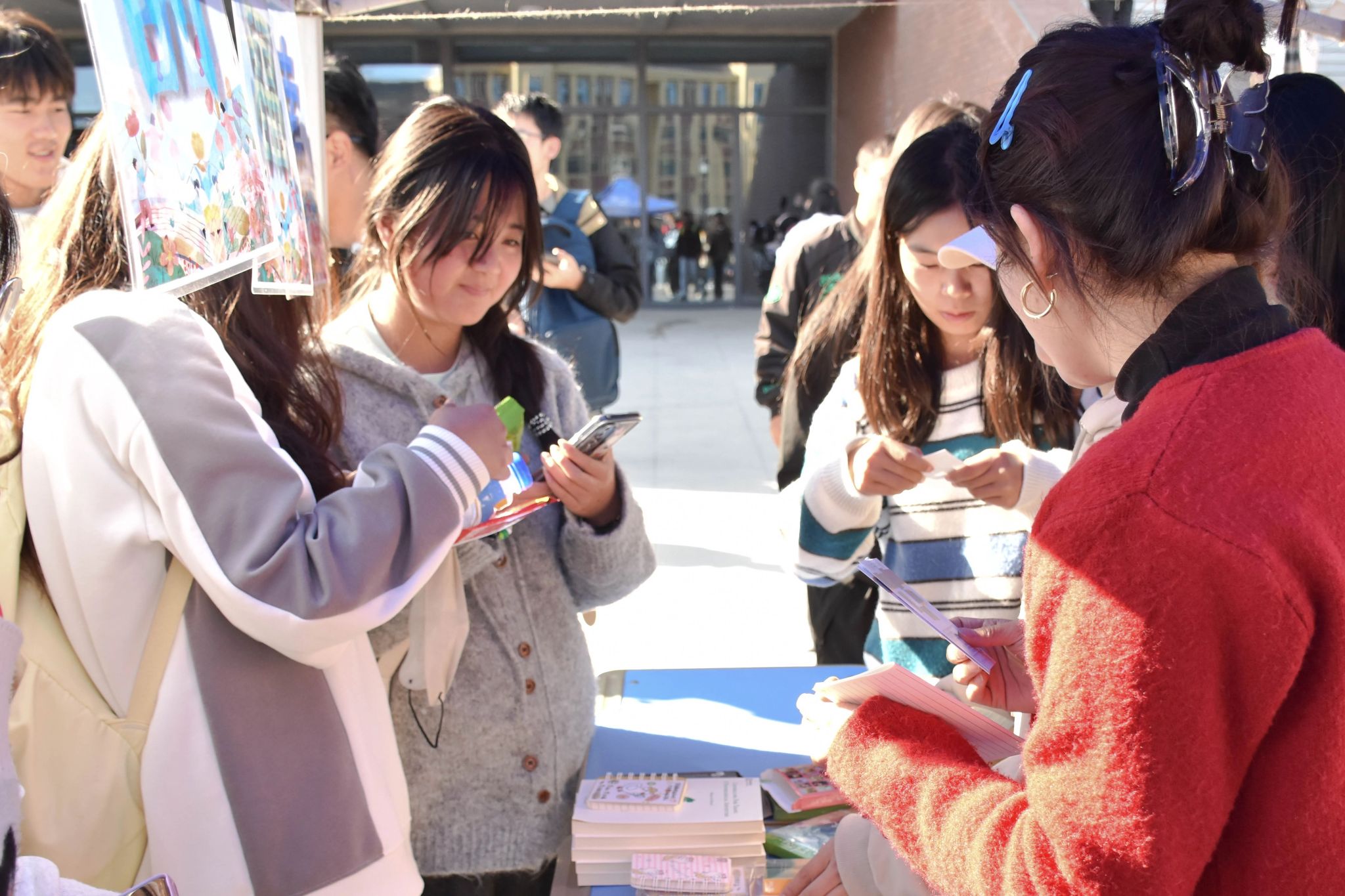 在新建1号教学楼前,现场开展的“世界精神卫生日签名”“秋日来信”“幸福刮刮乐”活动引发同学们纷纷驻足参与。每一个签名都代表着一份对自身心理健康的承诺和对世界精神卫生日的关注。每一份写给自己的时光来信,都是同学们对内心世界的思考与表达。每一张领取到的幸福刮刮卡将记录7天的幸福体验。活动现场的黄同学说:“我今天刮到的挑战是‘现在,请你给自己一个微笑或拥抱,并对自己说一句鼓励的话’,这正是我需要的,我今天随堂考试没发挥好,心情挺郁闷,我想对自己说‘你一直在努力,再给自己一些时间来查漏补缺,加油!’”。幸福不一定需要宏伟大事,而更多的是微小日常,感受当下、积极关注自我。