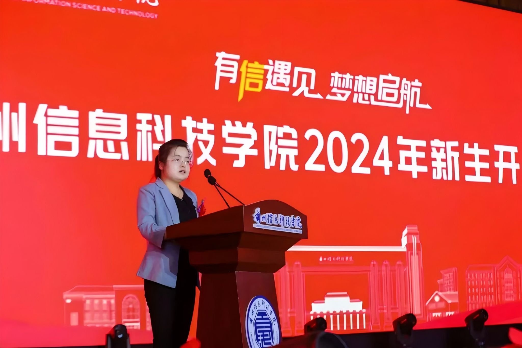 校长助理朱明敏宣读《关于表彰2024年迎新及开学峰值体验工作“优秀工作者”“优秀志愿者”的决定》并未获奖学生代表颁奖。
