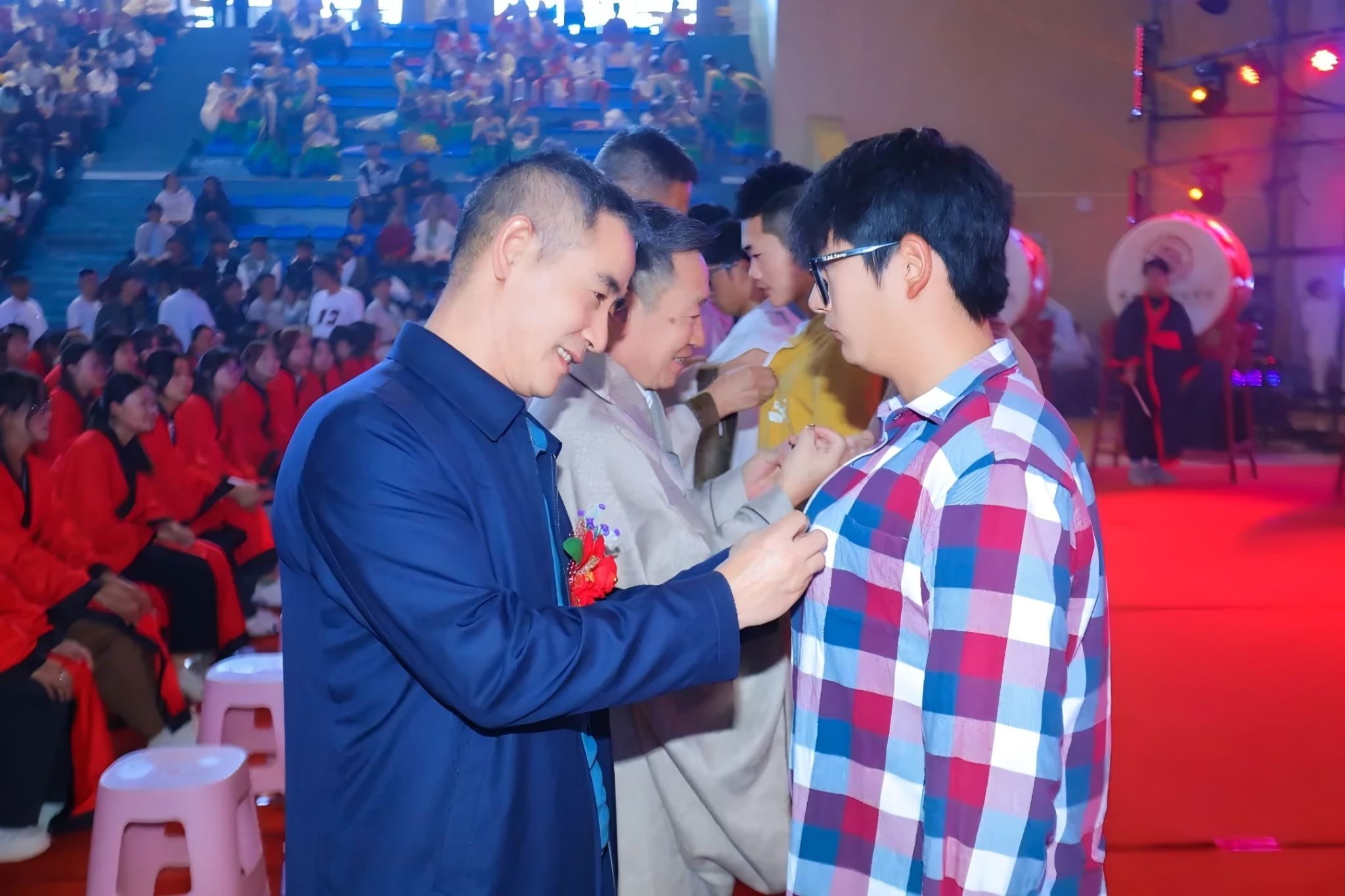 全体校领导为新生代表佩戴校徽。一枚小小的校徽,是一种传承,更是一种责任,饱含着学校的祝福与期望,承载着兰科人的使命与荣光!
