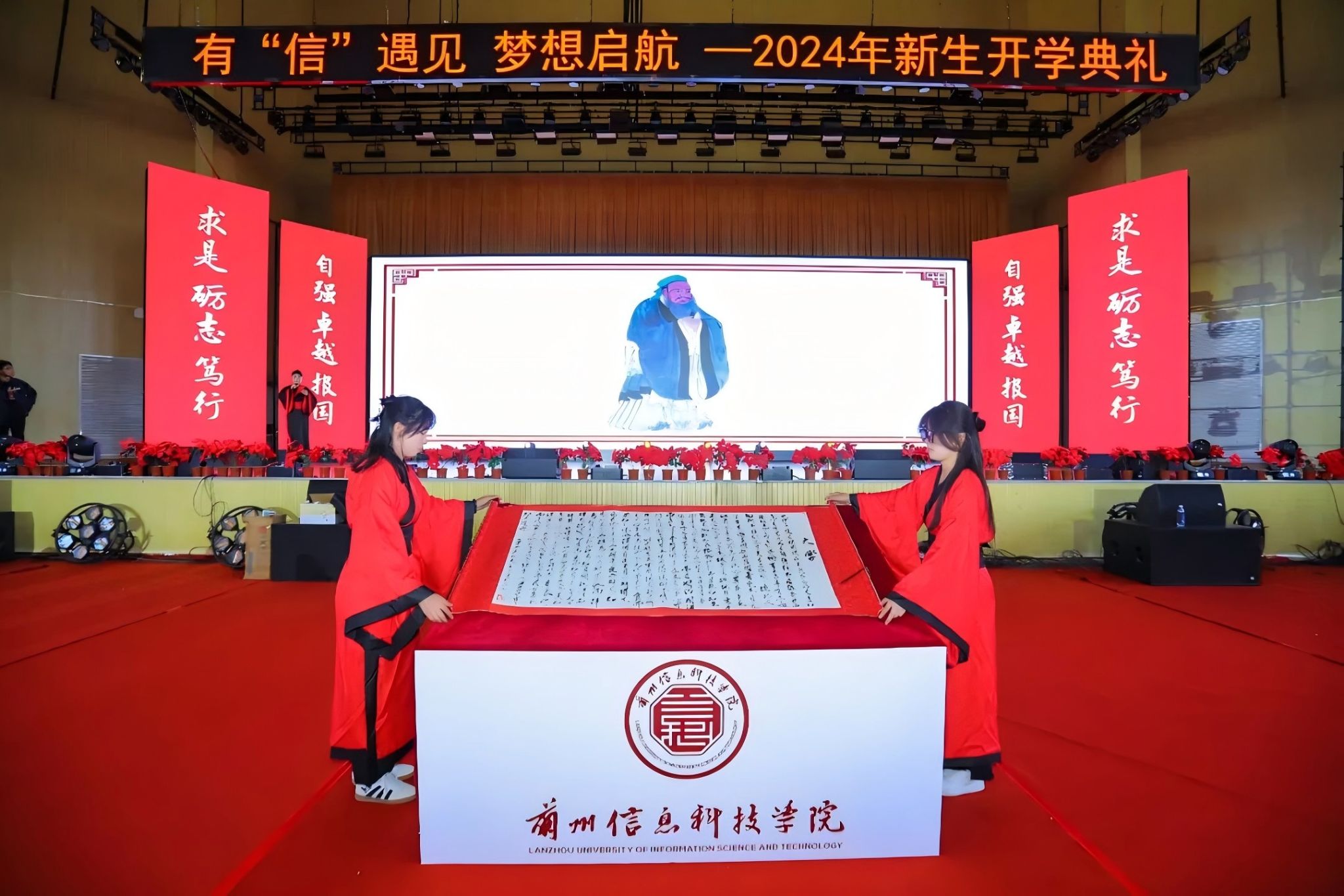 “欲治其国者,先齐其家,欲齐其家者,先修其身。欲修其身者,先正其心。欲正其心者,先诚其意。欲诚其意者,先致其知。致知在格物。”全体师生代表起立齐诵《大学》,千年前的大学之道响彻体育馆,在历史和现实的交错间,赓续兰科“求是、砺志、笃行”的精神血脉,传递“自强、卓越、报国”的坚定信念。