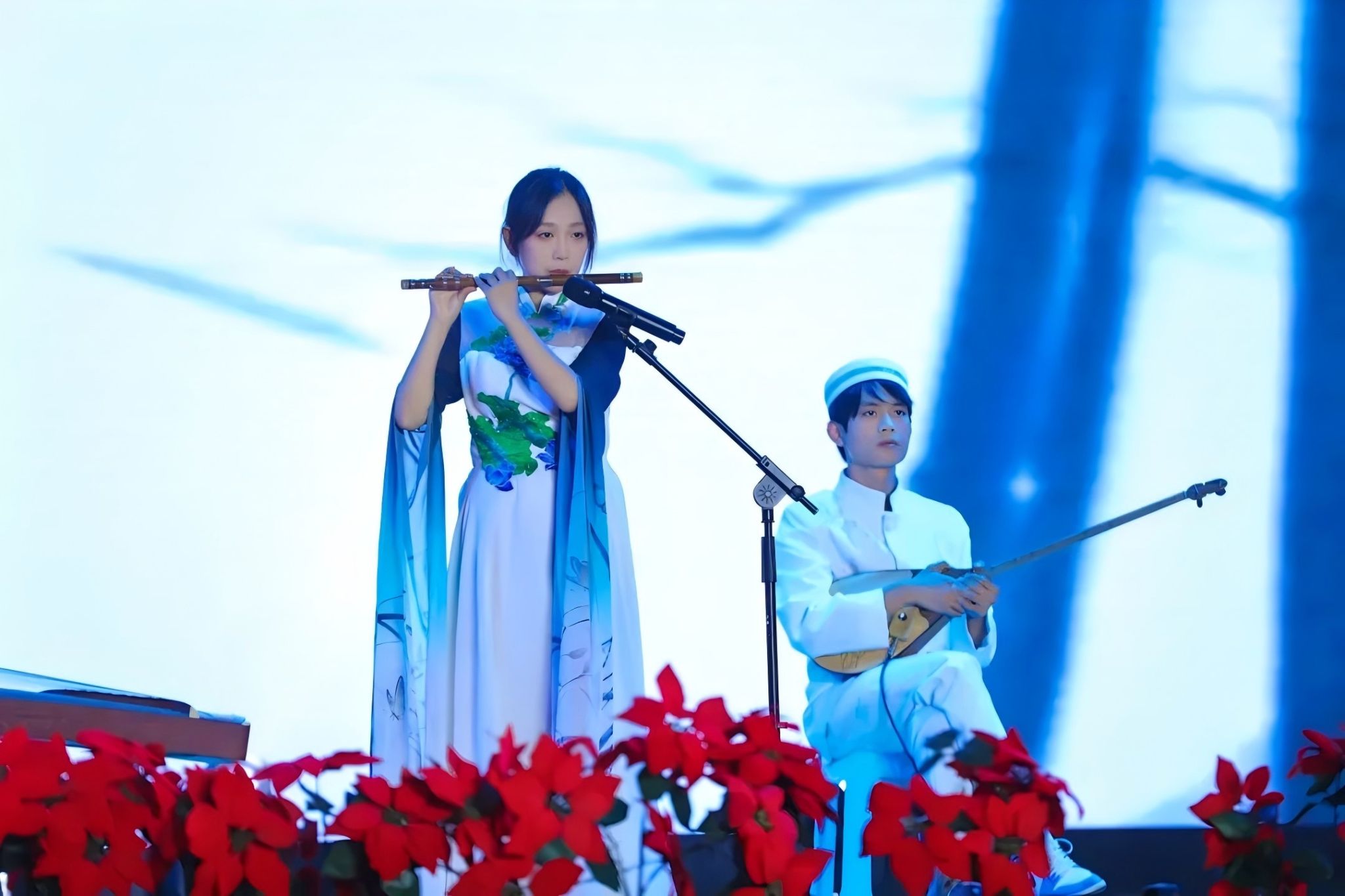 开学典礼在红色舞蹈激昂的旋律和磅礴的力量中圆满结束。同时最燃最嗨的迎新“音乐节”于晚间19:30火热开场,轻柔的民谣弹唱,讲述青春故事;燃炸的乐队演绎,传递独特魅力;低眉轻捻绣情意,灼灼青春秀芳华,一颦一蹙尽展风华;优美傣舞、劲爆街舞,用音乐的浪潮席卷校园,点燃青春活力!