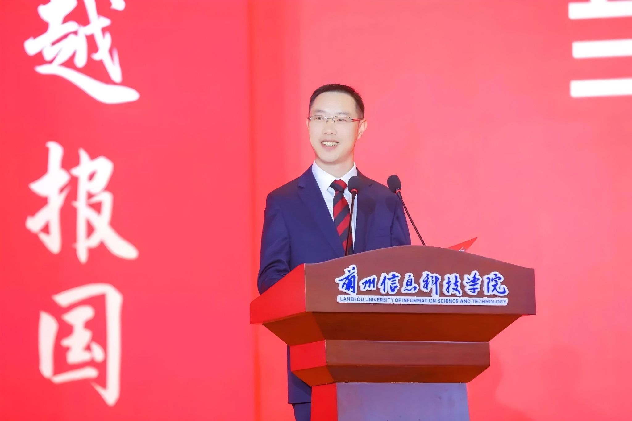 教师代表-马克思主义学院院长、甘肃省第四届高校教师教学创新大赛二等奖获得者、第六届甘肃省高校青年教师教学能力大赛三等奖获得者张喆教授发言,代表全体教师对全体新生表示欢迎,用“路漫漫其修远兮,吾将上下而求索”“宝剑锋从磨砺出,梅花香自苦寒来”“纸上得来终觉浅,绝知此事要躬行”阐释“求是、砺志、笃行”的校训,用“天行健,君子以自强不息”,“欲穷千里目,更上一层楼”,“青年者,国家之魂。”阐释“自强、卓越、报国”的精神,鼓励新生坚持青春梦想,保持良好心态,学会为人为学为事,以优异的成绩和学识回报父母、亲人和师长,以辉煌的成就回报国家,以璀璨的人生回报火热的青春!