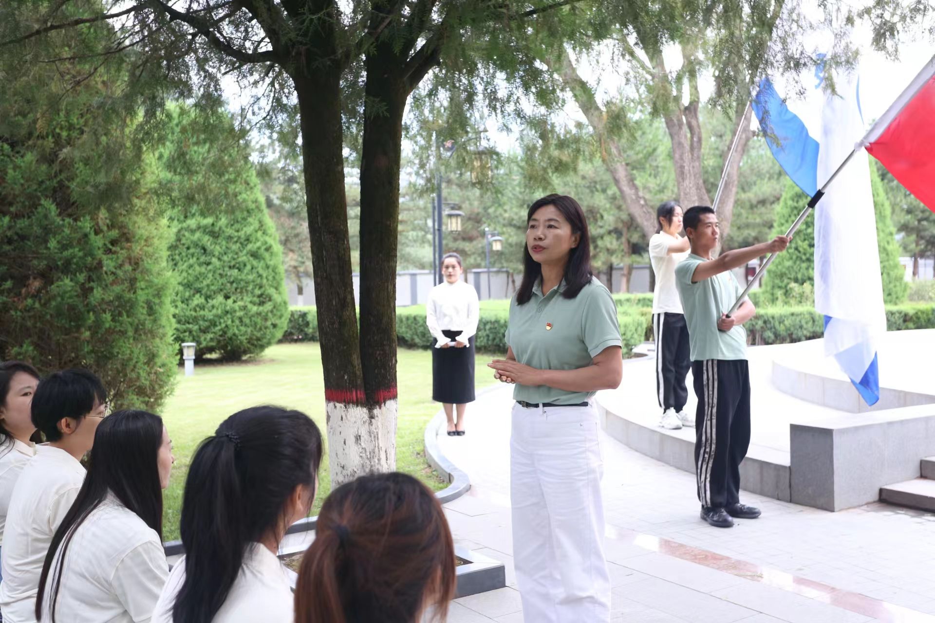 马克思主义学院两名思政课教师代表分别进行了现场思政课教学,为师生们讲述了南梁精神和陕甘边区革命历史。
