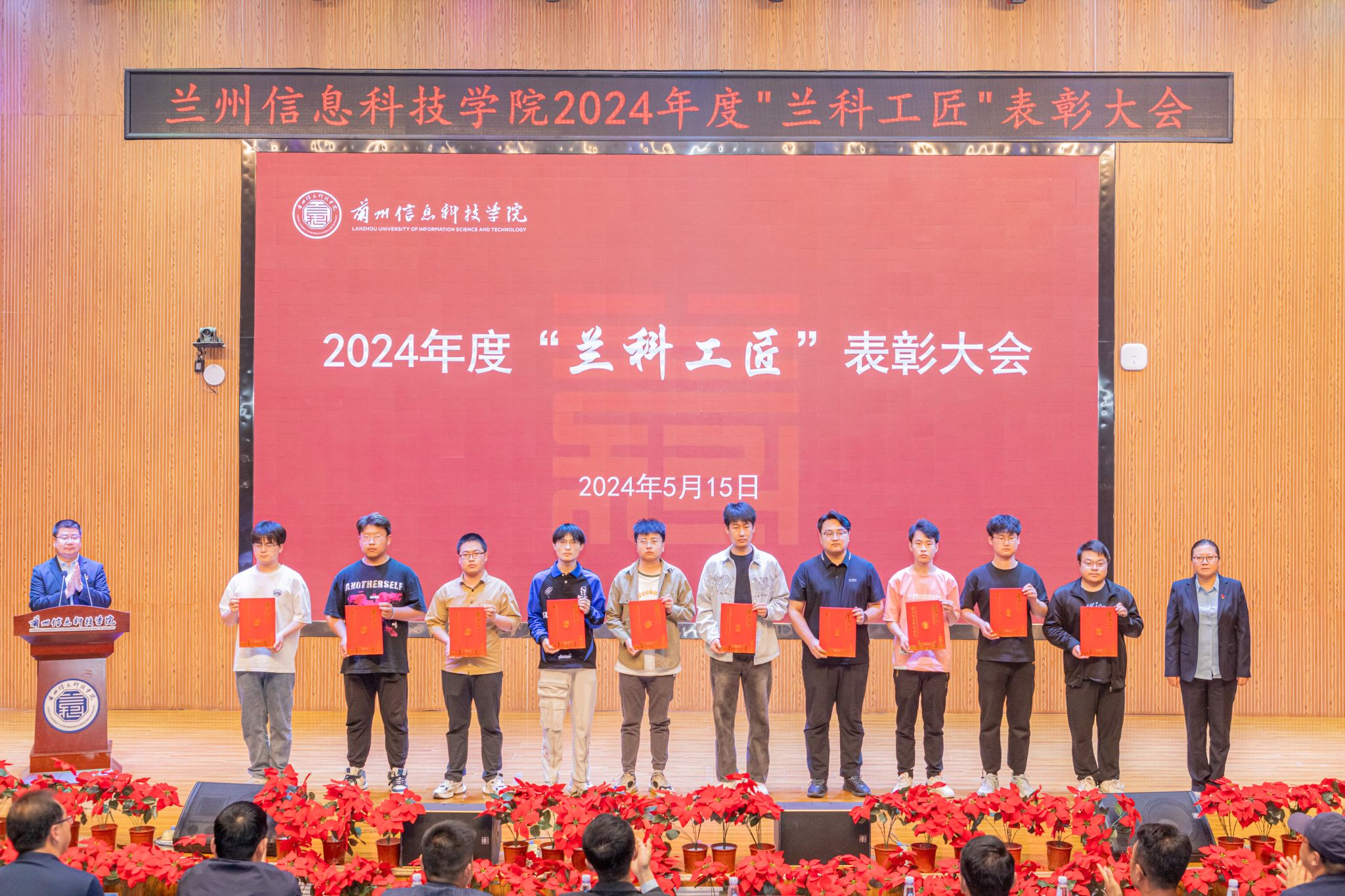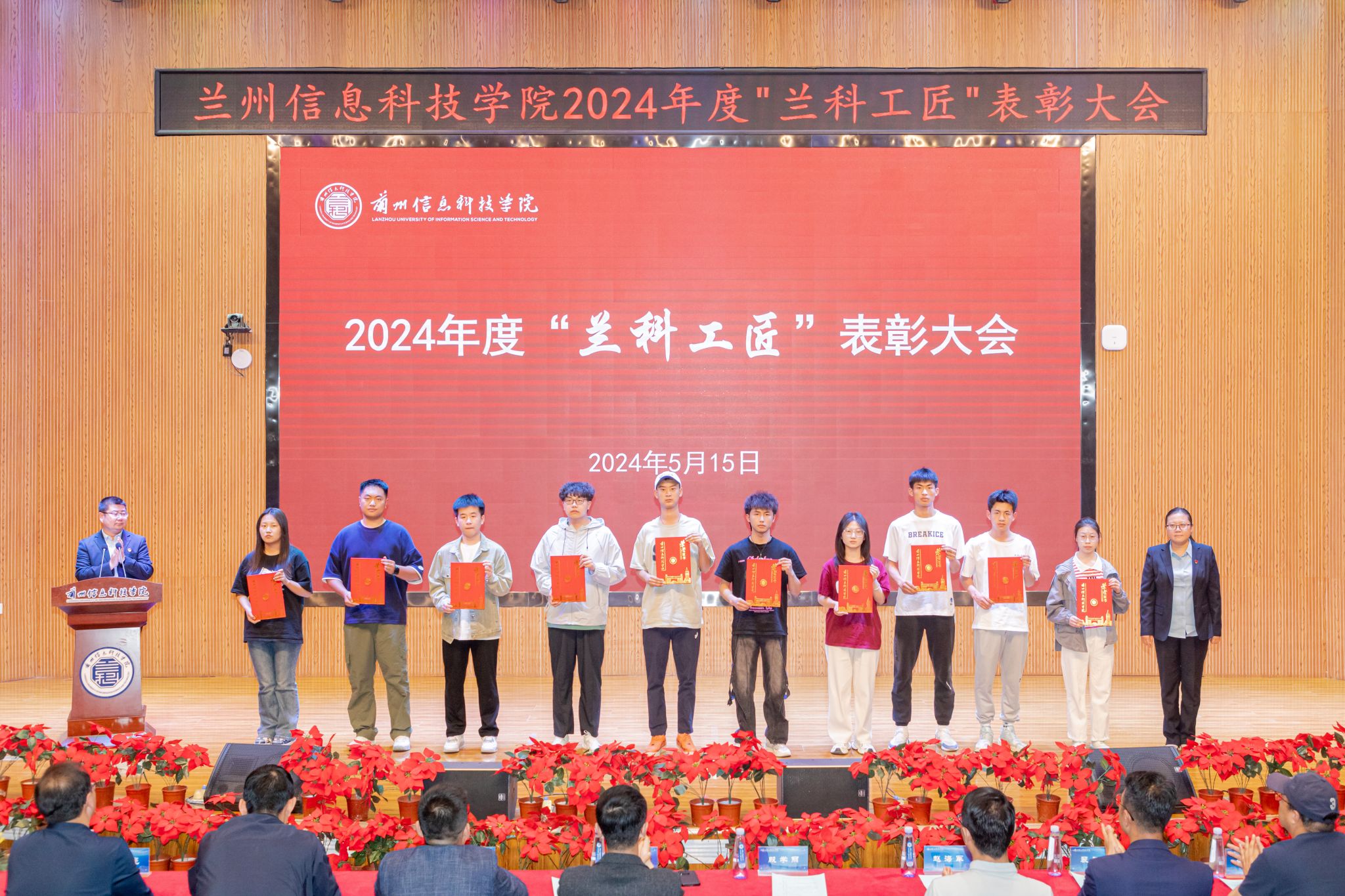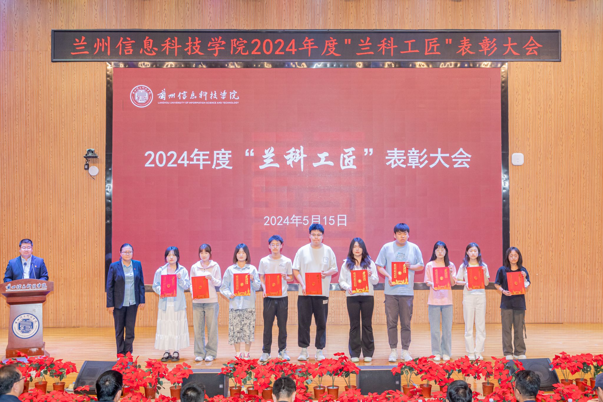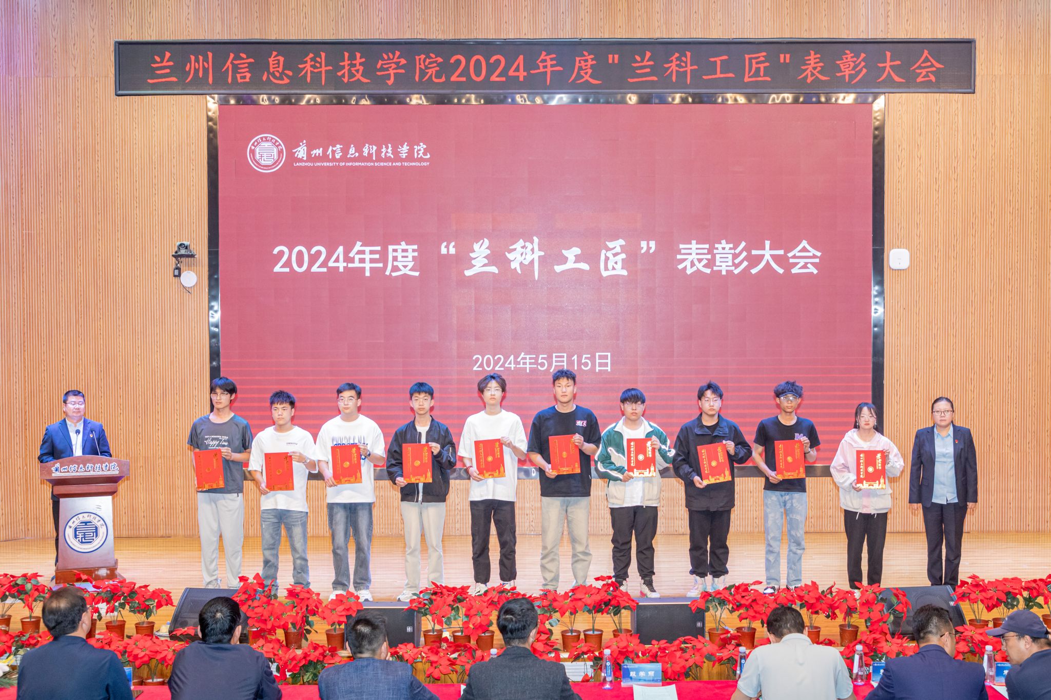 5月15日下午,开元集团网站在2号学术报告厅隆重召开2024年度“兰科工匠”表彰大会,副校长殷学丽、校长助理朱明敏,教务处、学生处、继续教育学院、创新创业学院等部门负责人及各学生发展中心全体人员、全体获奖学生参会。