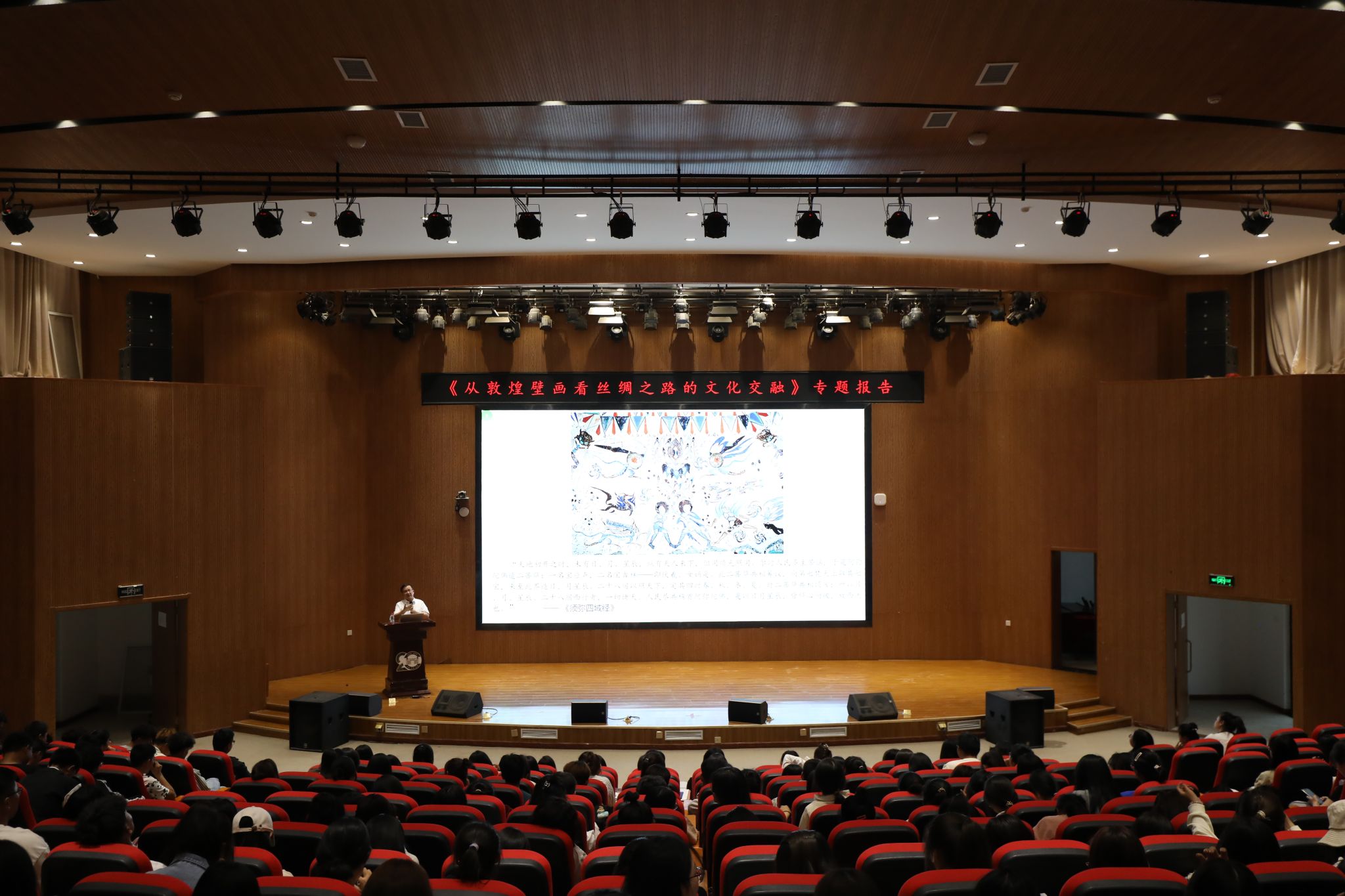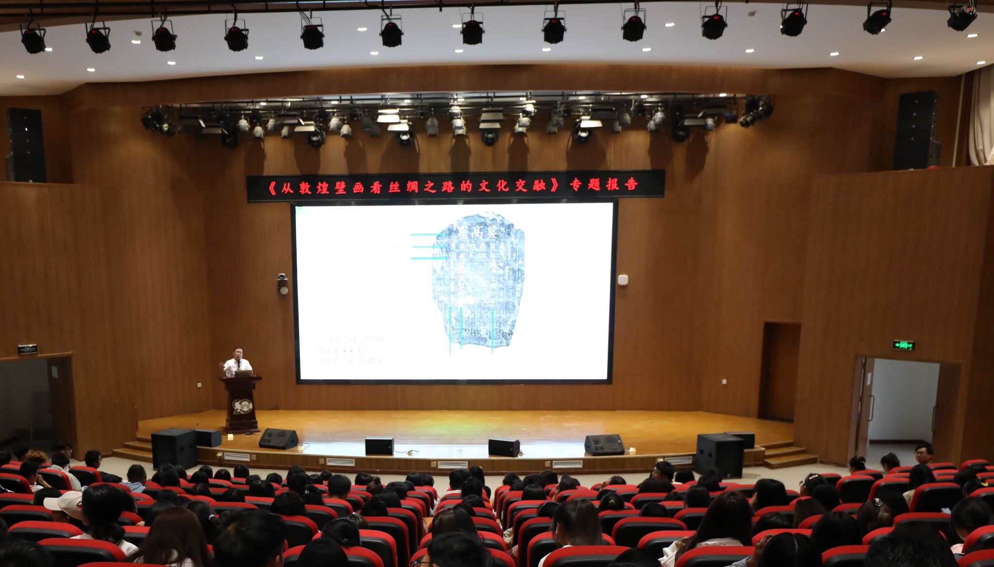 坚守文化自信,建设文化强国。此次讲座,从敦煌文化出发,以小见大,展现了中华民族灿烂多元的文化,加深了同学们对文化建设的规律性认识,坚定文化自信,切实担好文化传承发展新使命,为建设文化强国、建设中华民族现代文明贡献出自己的力量。