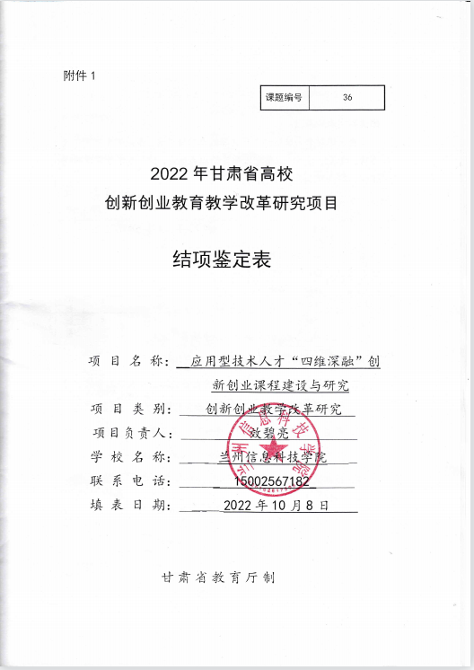 经项目负责人申请、组织专家验收、省教育厅审核,根据本次结题范围及研究成果认定,高等学校创新创业教育教学改革研究项目通过验收,同意结项。