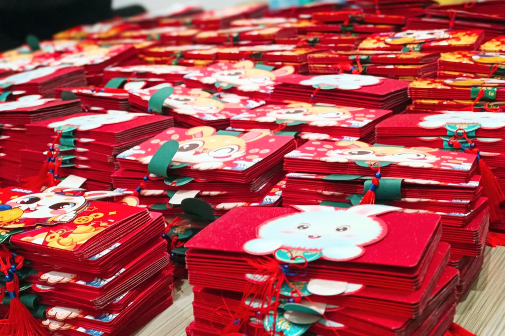 向每位教职工送上新春大红包是学校每年的传统,2023年我们即将迎来中国农历传统的兔年,为提升福利发放的仪式感和体验感,人事处优化了往年直接转入银行卡的发放形式,提前准备了可爱又吉祥的兔年专属折叠红包,将百元大钞逐一亲手放入,期待着可爱的小兔子们带着学校诚挚的祝福蹦蹦跳跳地走进每一位教职工心中。