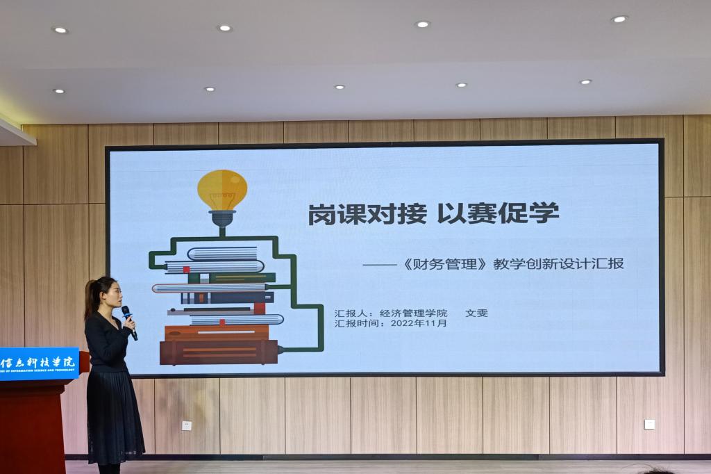 经济管理学院9名参赛教师各展所长,先后就《财务管理》《广告学》《金融市场学》《仓储管理》《政府与非营利组织会计》等课程进行了教学创新成果展示,授课条理清晰、课件新颖生动、内容各具特色。整体教学过程则以学生为主体,注重在教学过程中加强对学生学习方法的培养,学习策略的渗透,重视情感态度与价值观的培养,充分体现了对于课程的创新之处,达到了“以赛促教、以赛促学、以赛促改”的良好效果。