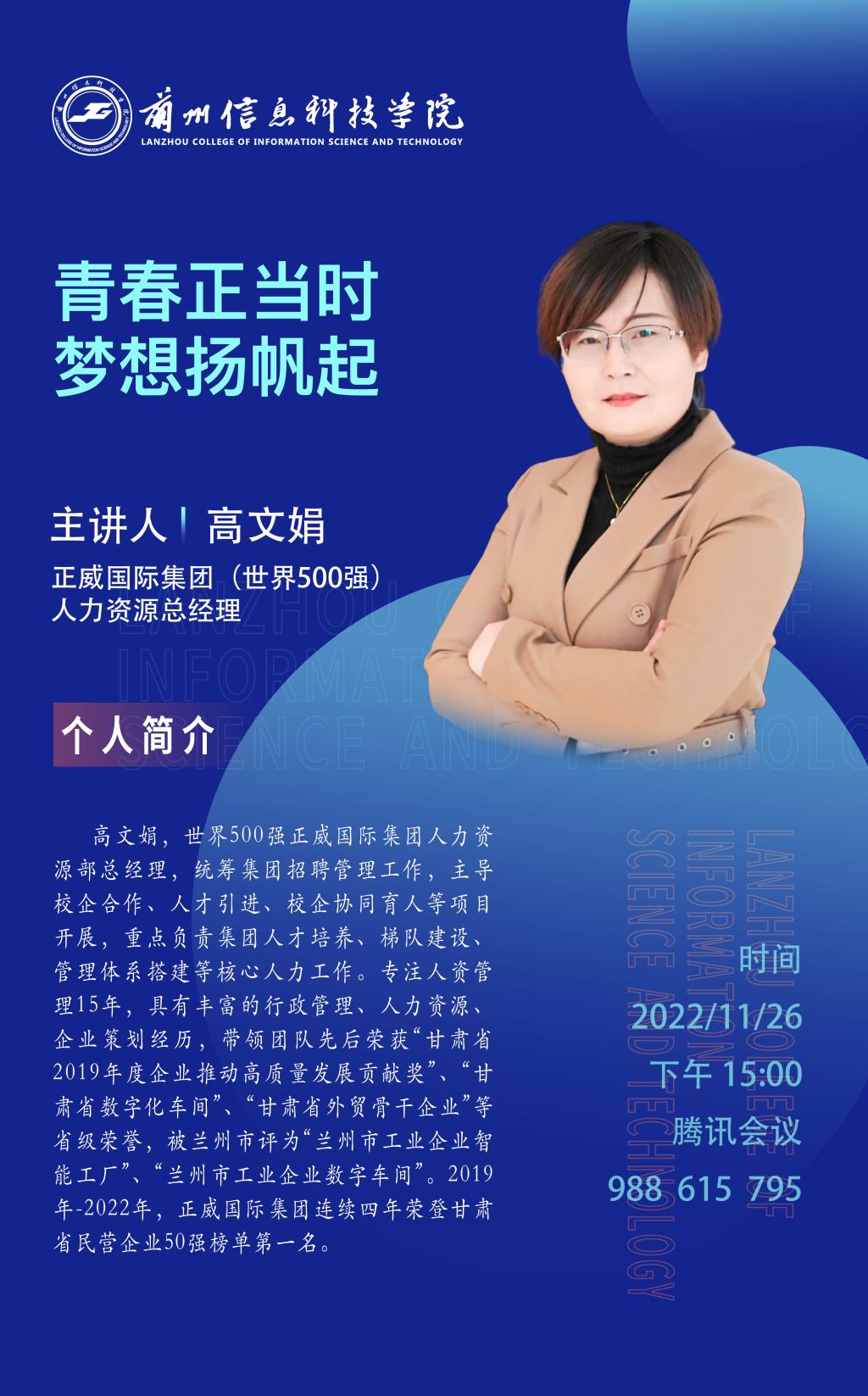 11月26日,开元集团网站邀请世界500强企业正威国际集团兰州项目人力资源副总经理高文娟女士面向机电工程学院毕业生开展就业专题宣讲。