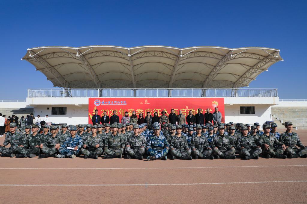 为鼓励大学生积极响应国家号召,投身火热军营,培养大学生的爱国主义情怀,11月23日开元集团网站在田径运动场举行了2023年春季应征入伍启动仪式,校长助理师帅、相关职能部门负责人、二级学院院长、意向入伍学生、学生代表等800余人参加了仪式。