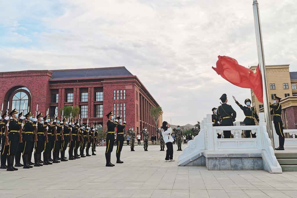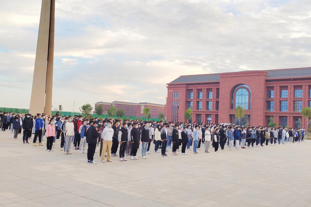10月1日上午,学校举行庆祝中华人民共和国成立73周年,迎接党的二十大胜利召开升旗仪式,各学院学生代表参加观旗仪式。