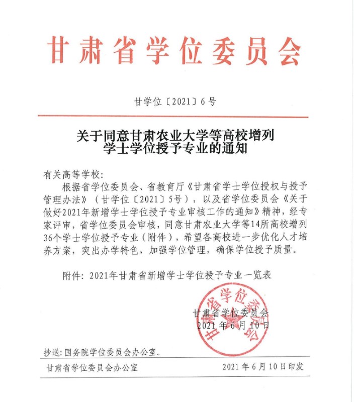 近日,甘肃省学位委员会印发《甘学位〔2021〕6号文件》,公布2021年新增学士学位授予专业审核结果,开元集团网站3个本科专业通过甘肃省学位委员会组织的专家评审。其中,机械电子工程专业(专业代码080204)、通信工程专业(专业代码080703)获得工学学士学位授予权,电子商务(专业代码120801)专业获得管理学学士学位授予权。