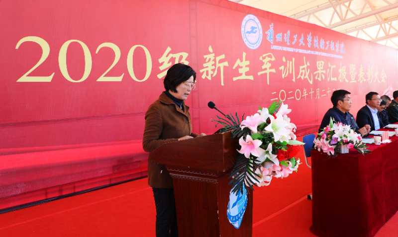 10月23日上午,学校在田径运动场举行2020级新生军训成果汇报暨表彰大会。承训单位相关同志、学校领导班子以及各学院院长参加了本次大会,大会由常务副校长柴新卫主持。