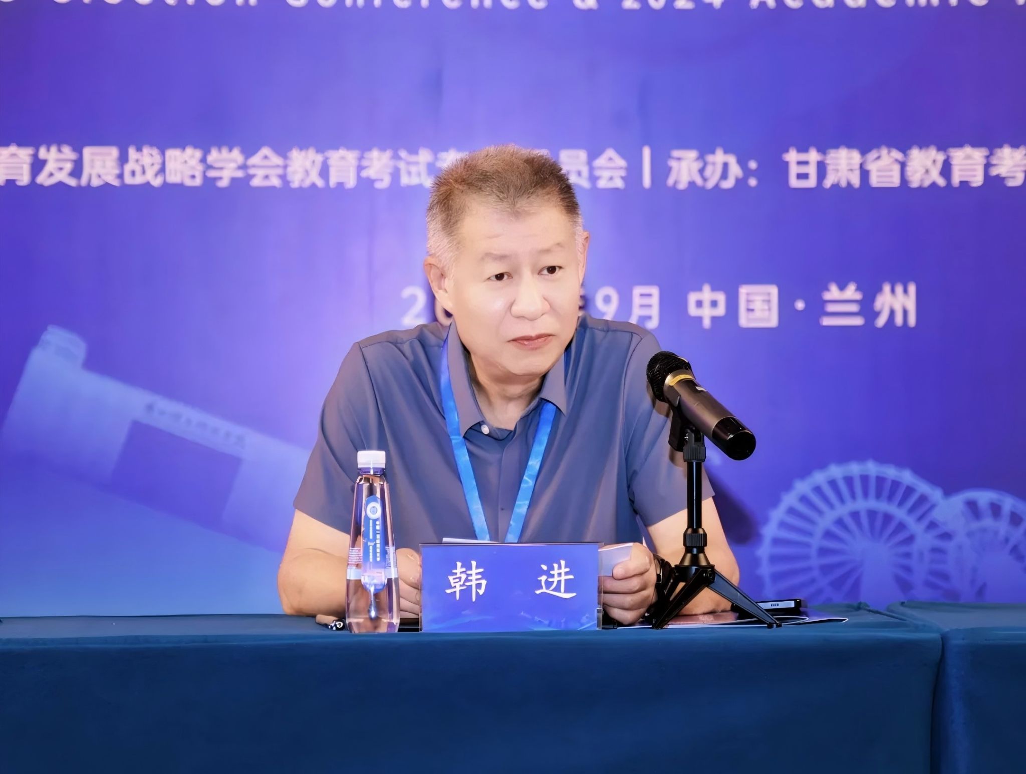 韩进向本次换届大会暨学术年会的顺利召开和当选的考专委新一届理事会成员表示热烈祝贺。他指出,全国教育大会刚刚结束,在学习贯彻大会精神的热潮持续高涨的氛围中,考专委换届大会暨2024年学术年会的召开正逢其时、承上启下、意义重大。他表示,考专委成立五年来,在坚持党的领导、学术研究、合作交流、为民服务等方面做出的努力,获得了良好的社会效益,以实际行动和实在成果践行了“学术立会、服务兴会”的根本宗旨,是战略学会为深入推进我国教育高质量发展、加快教育强国建设做出的重要贡献。他强调,当前,我国在建设教育强国上仍存在不少差距、短板,实现从教育大国向教育强国的跨越还任重道远。所以今天,我们比以往任何时候都更需要凝聚奋斗的共识、激扬奋进的力量。他要求,考专委在新一届理事会的带领下,要加强学习,为教育强国建设提供研究支撑;要加强创新,为教育强国建设激发内生动力;要加强服务,为教育强国建设担好时代之责,与全国招考同仁一道,在深入推进我国教育高质量发展、加快教育强国建设的伟大征程上持续发力,再创佳绩。