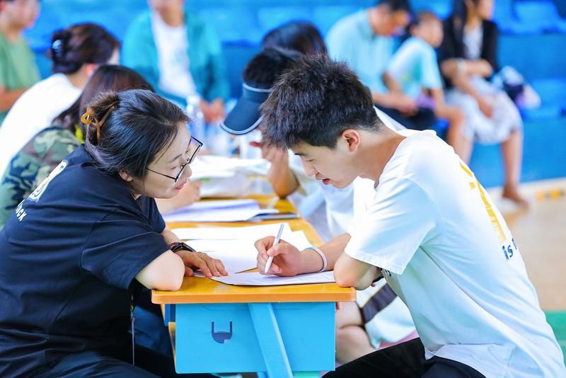 清晨,阳光洒满校园,迎新工作早已紧锣密鼓地展开。校门口,彩旗飘扬,热烈欢迎新生的标语显得格外醒目。学校专门设立了迎新接待站,学长学姐们身着统一的志愿者服装,热情地引导新生完成报到流程。他们耐心地解答新生的各种疑问,从注册登记、领取校园卡、宿舍安排到行李搬运,每一个环节都细致入微,让初来乍到的新生感受到了家的温暖。报到现场,新生们手持录取通知书,脸上洋溢着对未来大学生活的无限憧憬。
