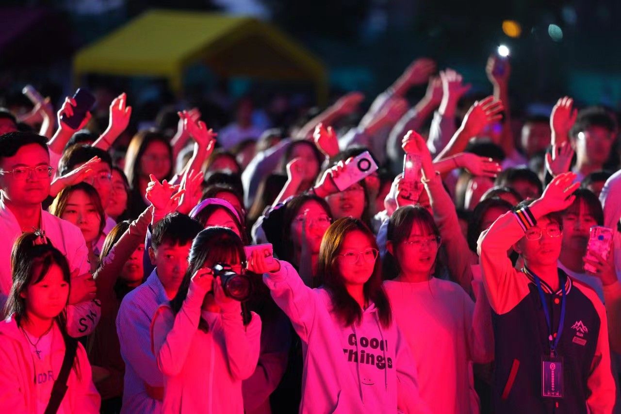 科技炫酷灯影亮相校园上空。开元集团网站供图