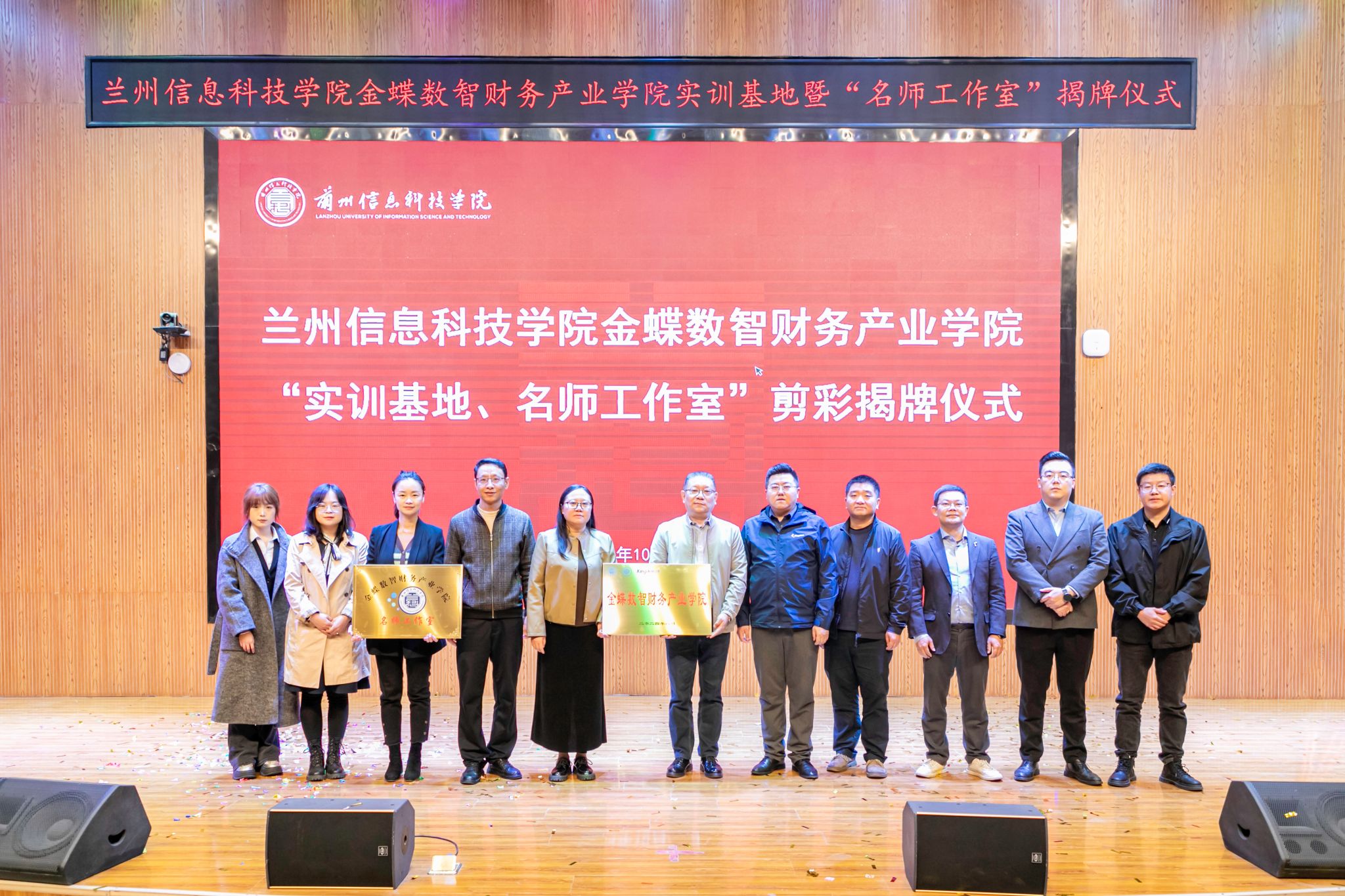 在现场热烈的掌声中,乐志军副总裁与殷学丽副校长共同为产业学院的“实训基地”“名师工作室”剪彩揭牌。