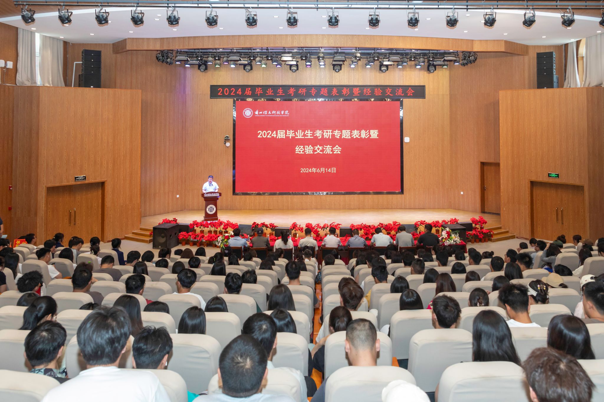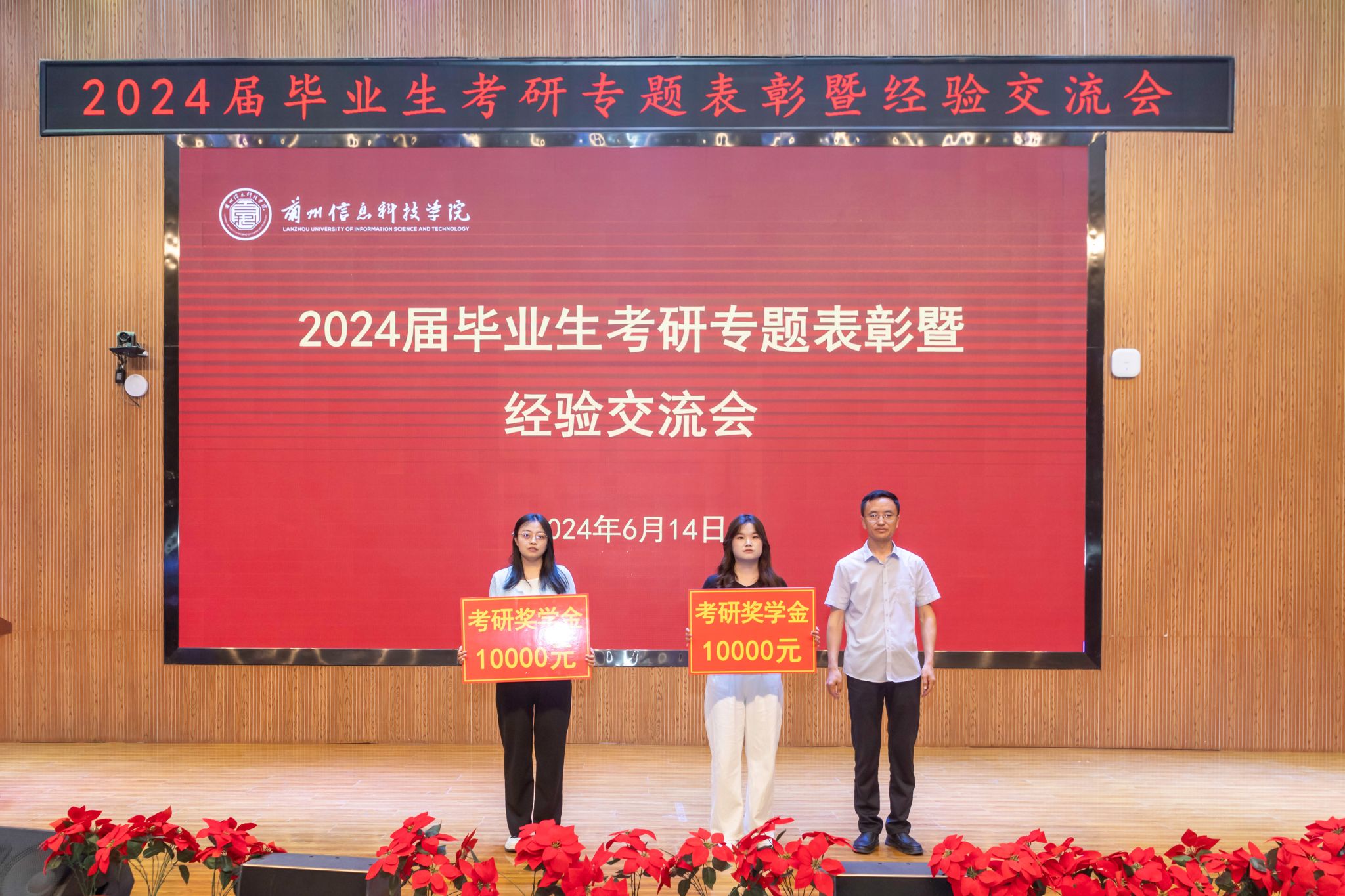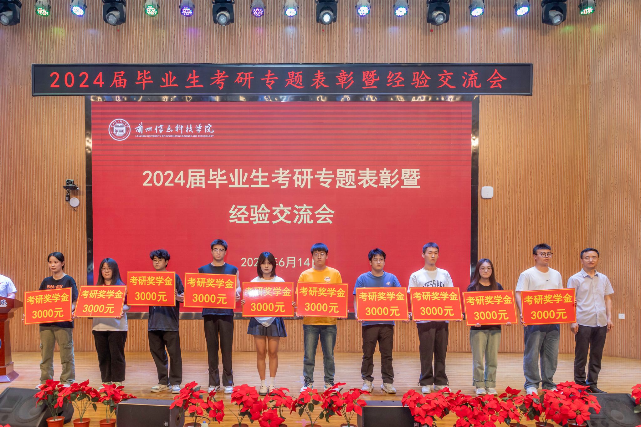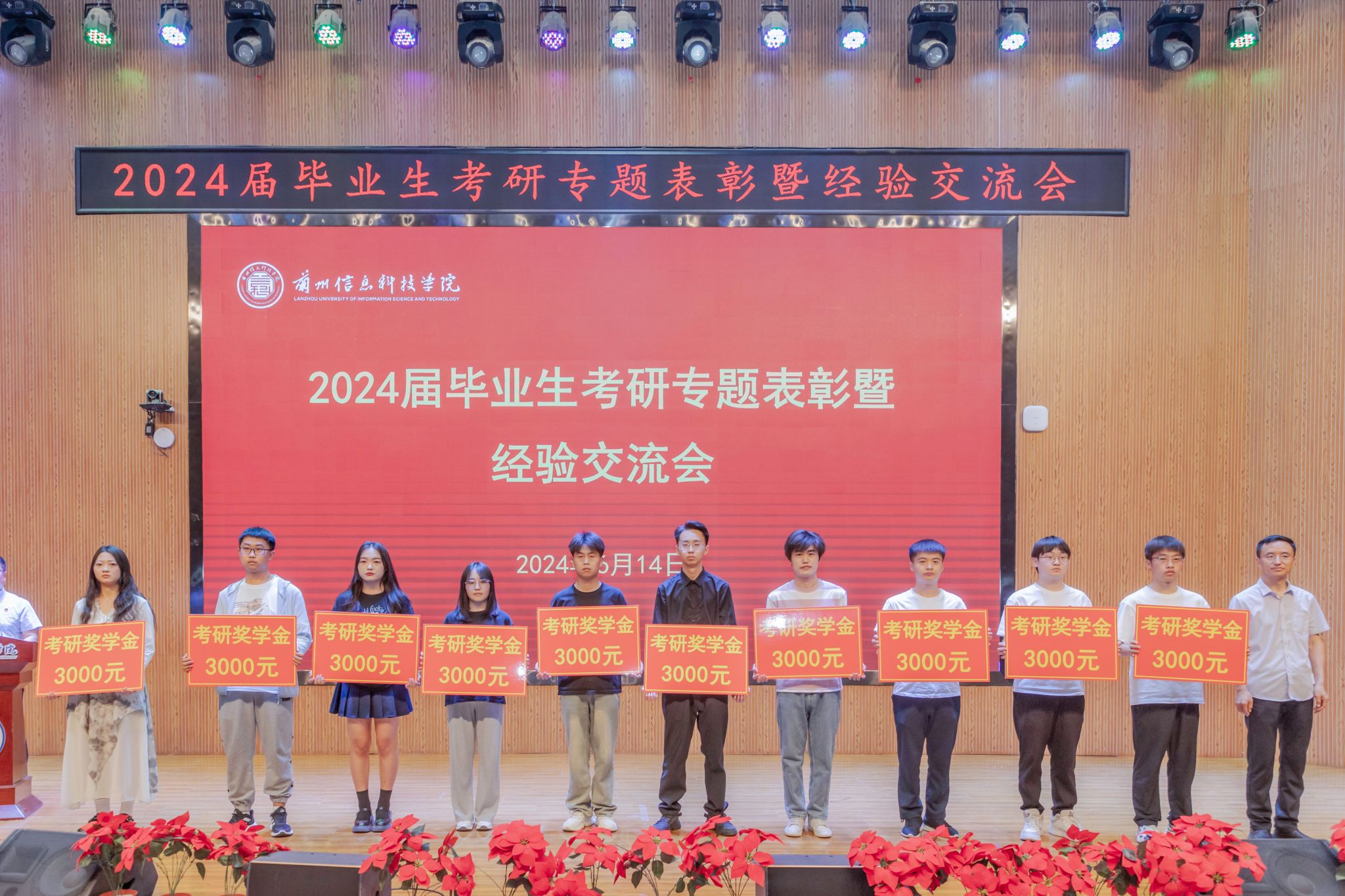 会议宣读了《关于表彰奖励2024届毕业生考取硕士研究生的决定》,校长助理朱明敏为全体考取硕士研究生的同学颁奖。
