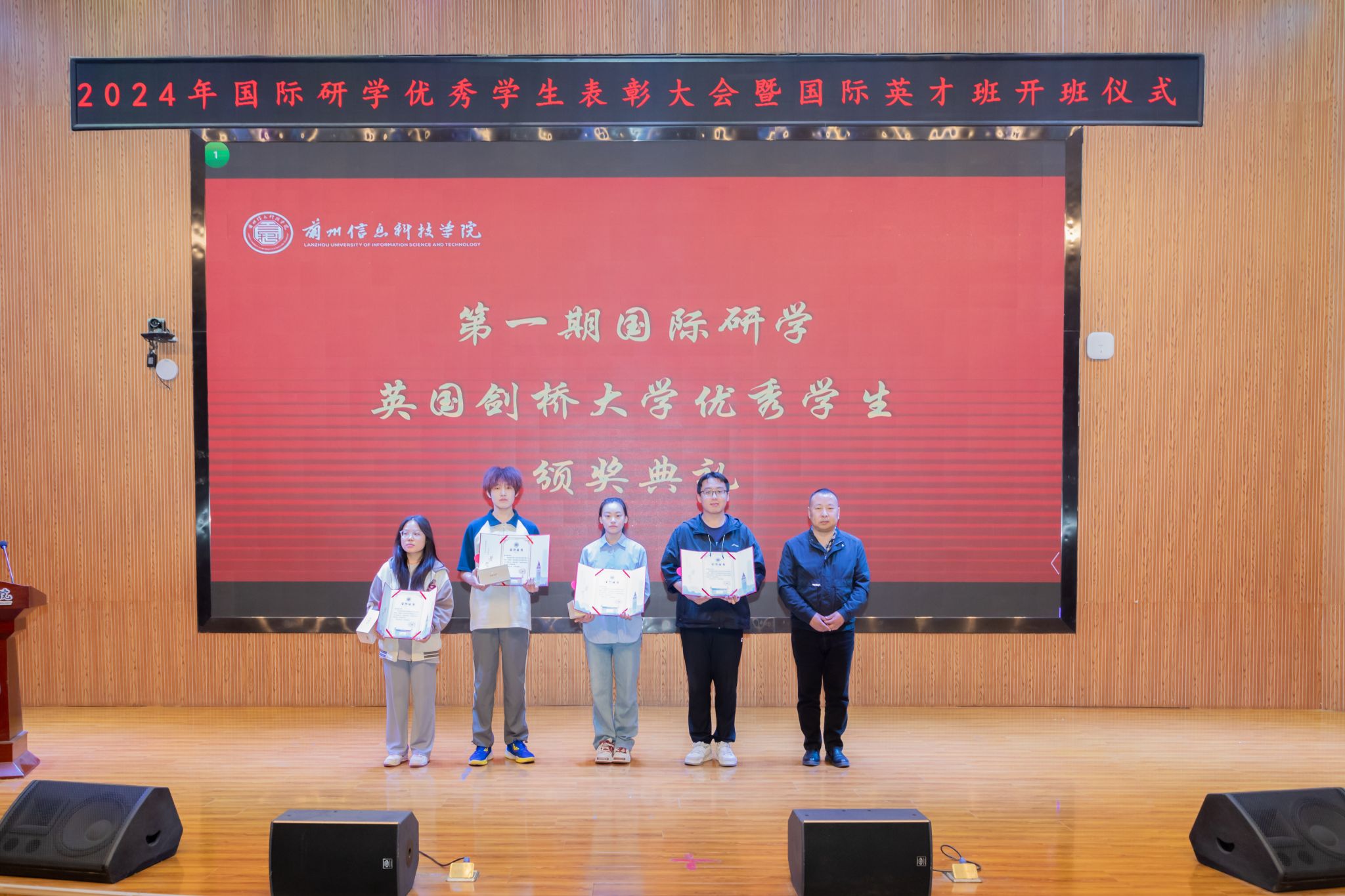 会上,首先对第一期英国剑桥大学研学的优秀学生及第二期国际研学资优选拔赛获奖学生进行表彰。优秀研学学生张智睿和冉亚冬分享了他们在研学期间的体验和收获,并鼓励同学们积极参与国际交流活动;国际英才班优秀学生代表杨佳怡则结合自身的学业规划,阐述了自己参与国际英才班的初衷以及对未来的期许;优秀校友马博睿通过分享自己在英国利物浦大学的留学经验,鼓励学弟学妹们勇敢追梦,积极参与“回归计划”回母校任职,与母校共发展。
