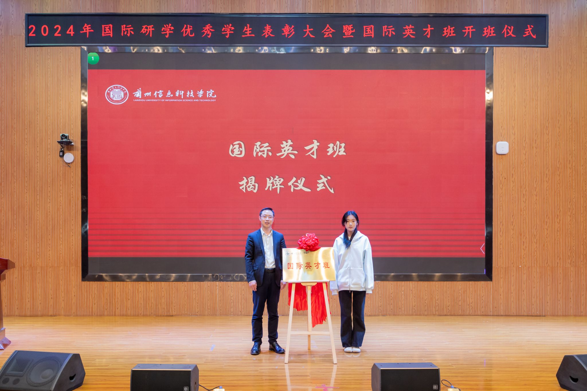 大会隆重举行了国际英才班的开班仪式,并为学生颁发国际英才班的录取通知书。黄炜教授与国际英才班学生代表杨佳怡共同揭牌,标志着国际英才班的正式成立,同时也预示着学校国际化教育进入了一个崭新的发展阶段。