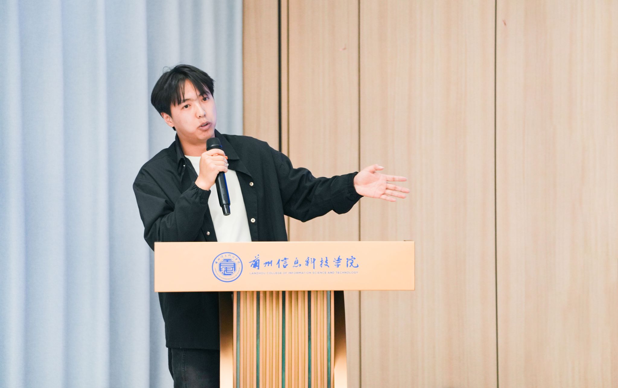 省人大代表金佛缘同学通过对“两会”背景、主要议题和精神要点进行解读,让同学们对“两会”精神有了初步了解,随后重点解读政府工作报告中提出的关键内容,包括经济发展重点、社会建设目标、科技创新举措、生态文明建设等,同时对人大职能展开了全面解析,带领学员们深入理解立法、监督、决策和任免权等知识点。讲座尾声,金佛缘与现场学生就如何将“两会”精神融入到日常学习和实践中,以及如何为实现中华民族伟大复兴的中国梦贡献青春力量等问题进行了亲切的互动交流。他倡导大家要珍惜大学学习时光,热爱学校,争做立志报国的好青年。