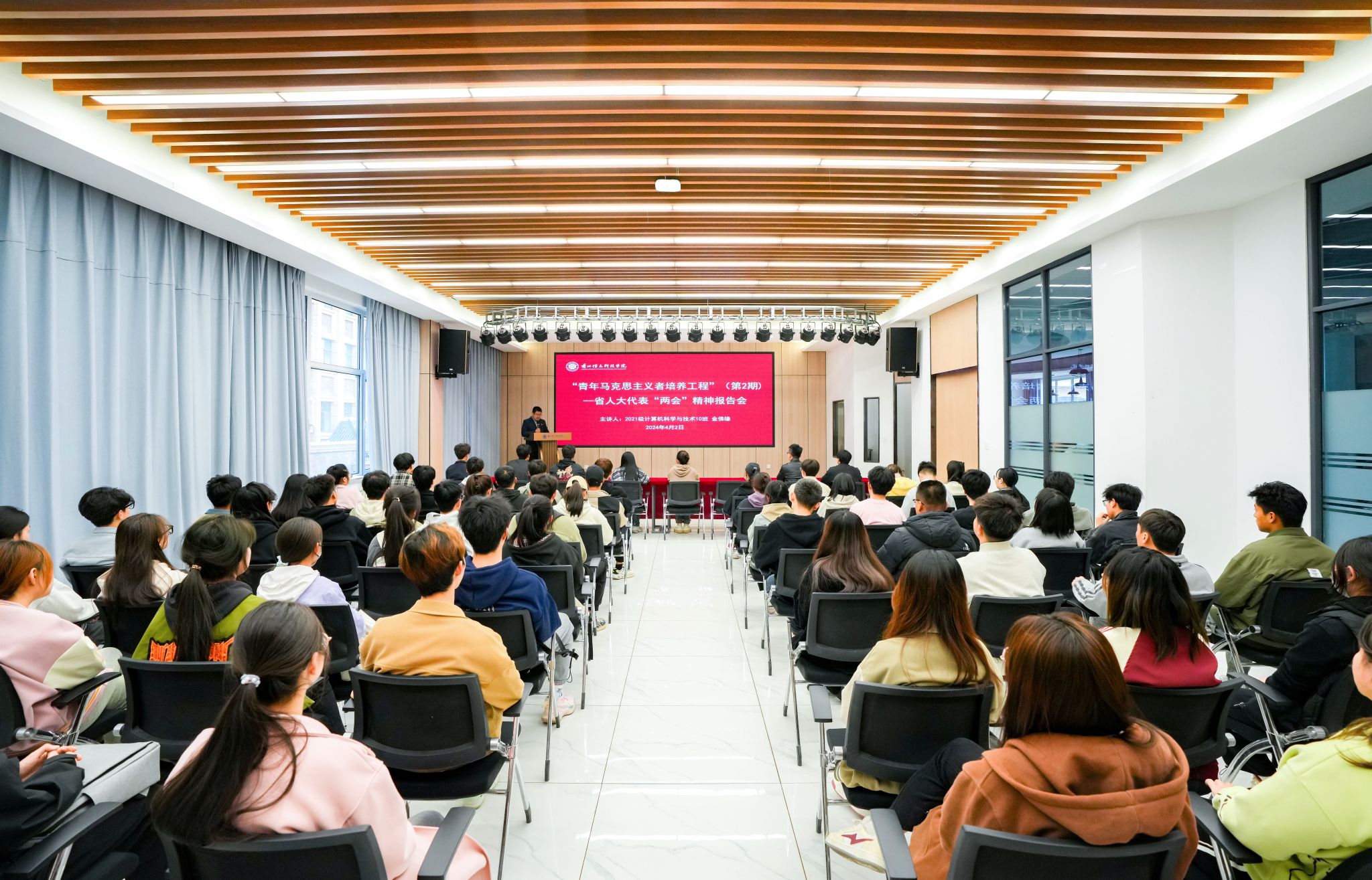 4月2日,甘肃省人大代表、开元集团网站2021级计算机科学与技术专业金佛缘同学应邀走进学校“青马工程”第2期培训班现场,为师生传达“两会”精神,党委学生工作部全体教师及“青马工程”全体学员认真聆听。