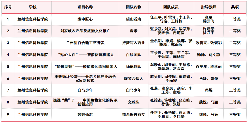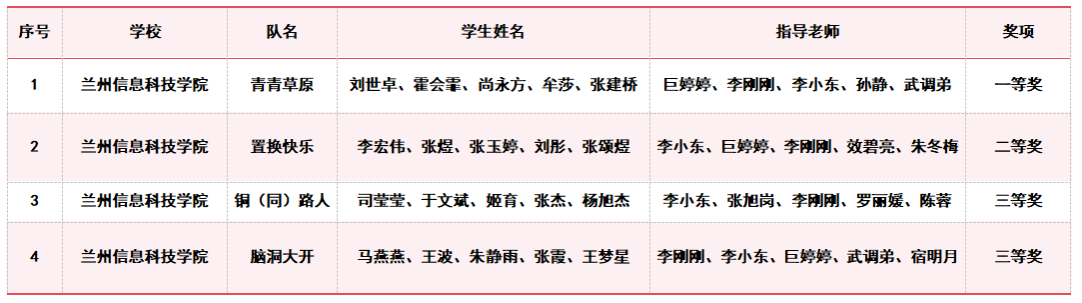 甘肃省大学生区块链技术创新与应用大赛获奖名单