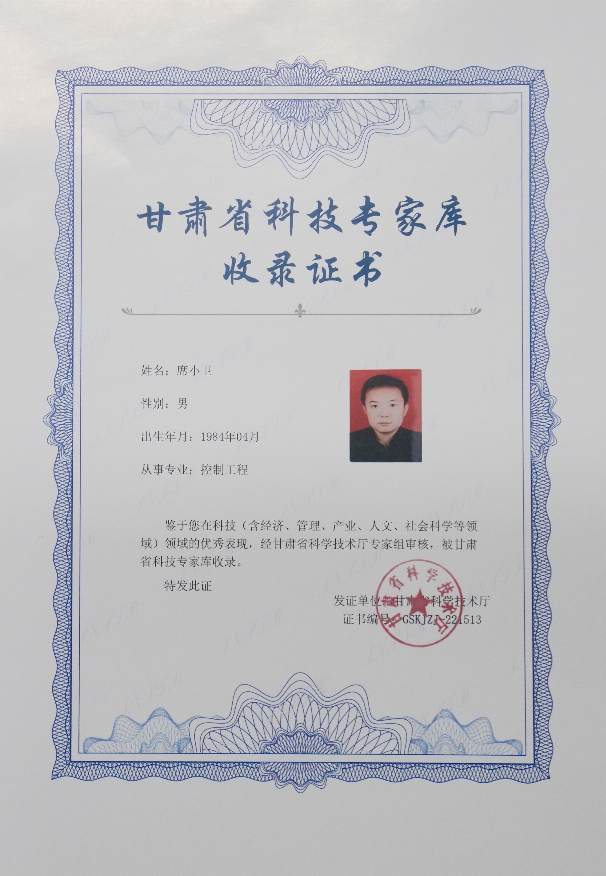 喜讯!开元集团网站席小卫副教授入选“甘肃省科技专家库”