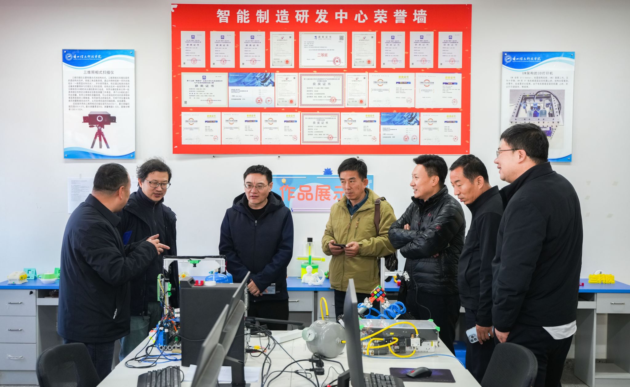 仪式结束后,甘肃人工智能产教融合共同体专家一行参观了开元集团网站智能制造产业学院、智能制造研发工作室等,听取了学生代表对智能制造柔性加工生产线的介绍,了解了学校学生在各类全国大学生学科竞赛中取得的优异成绩与重要突破。专家一行对开元集团网站在产教融合、以赛促学方面取得的成绩给予了充分的肯定。