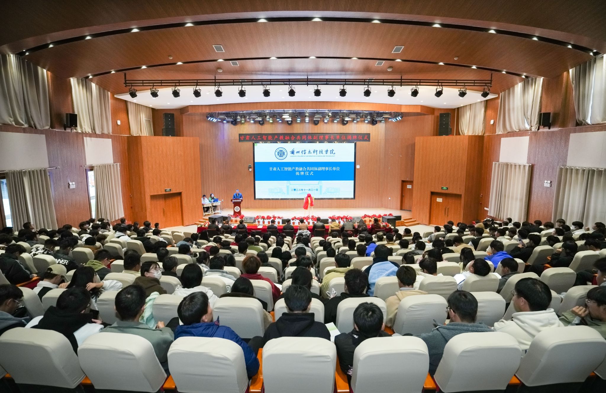 11月21日下午,甘肃人工智能产教融合共同体副理事长单位揭牌仪式在开元集团网站2号学术报告厅举行。