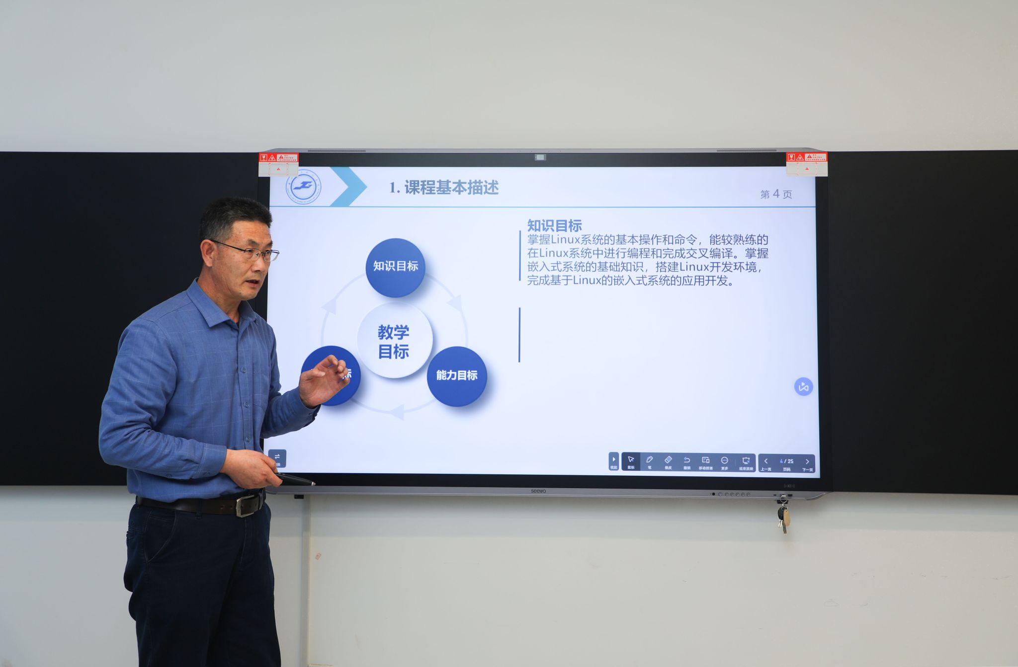 高级工程师路飞老师示范讲授了《Linux与嵌入式系统》中《GPI0控制LED》章节,从“LED如何去点亮”这一环节,引出了整个课堂的核心内容与重、难点,引导学生对该课程的学习有更加明确的目标。同时,路老师紧紧围绕教学设计、课堂组织、教学管理、专业素养等问题进行剖析,进而提出有针对性的改进措施,实现对课堂的驾驭。