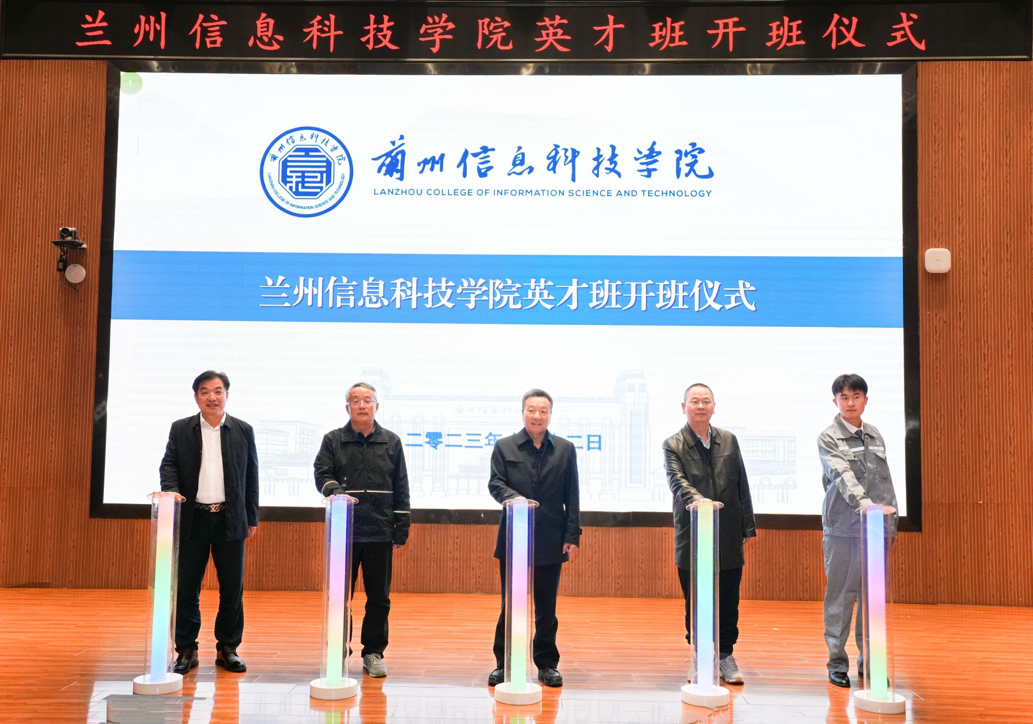 最后,学校领导、学业导师及英才班学生代表共同为英才班揭牌并启动仪式灯柱。