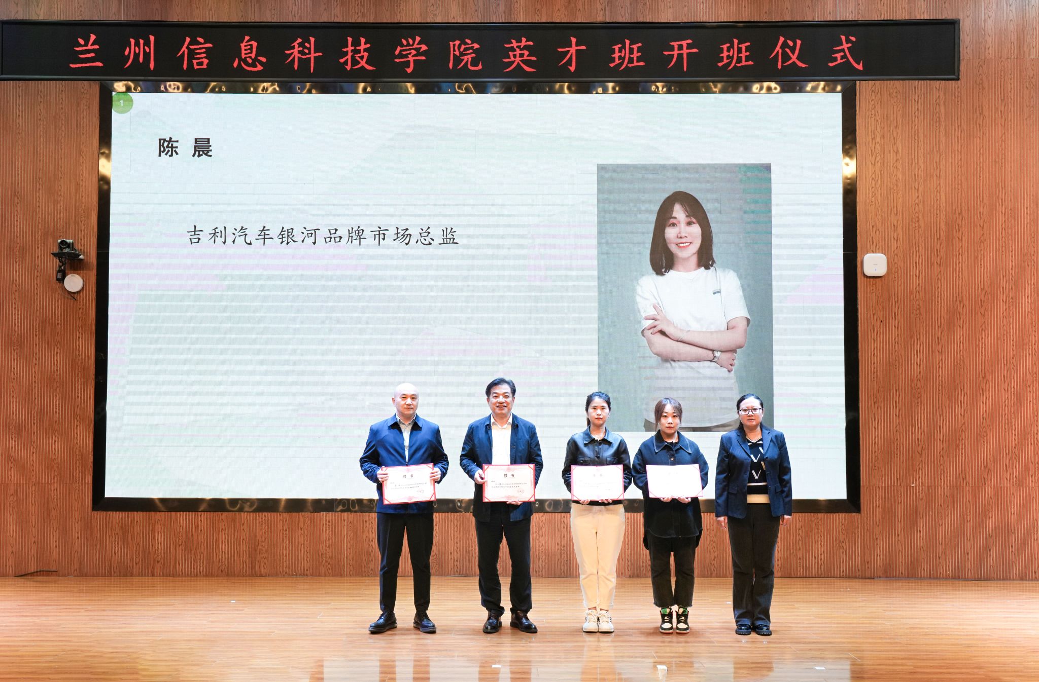 随后,殷学丽为英才班导师颁发了聘书。聘任甘肃省人民政府参事、兰州交通大学教授、博士生导师王永顺,教育部大学物理教学指导委员会委员及西北地区工作委员会主任委员、甘肃省教学名师、甘肃省“园丁”奖、二级教授、博士生导师戴剑锋,甘肃省领军人才、甘肃省“四个一批”人才、教育部“长江学者创新团队”带头人、兰州理工大学二级教授、博士生导师李有堂,甘肃省领军人才、兰州交通大学教授闵永智等15名高职称、高学历、高水平教师为英才班专业导师和学业导师。聘任电气与电子工程学院学生副院长段军鹏、机电工程学院学生发展中心主任姚文彬、副主任孟雅雯为成长导师。聘任江苏龙腾特钢集团党委副书记朱永坤、吉利汽车等企业领导为职业规划导师。导师们表示将做到坚定信念,以德树人;心系学生,教书育人;尽心尽责,授业解惑;开拓创新,授之以渔。同时,希望同学们能立人之本,在于品德高尚;成才之路,在于勤奋好学;卓越之道,在于实践创新;人生之乐,在于担当责任。