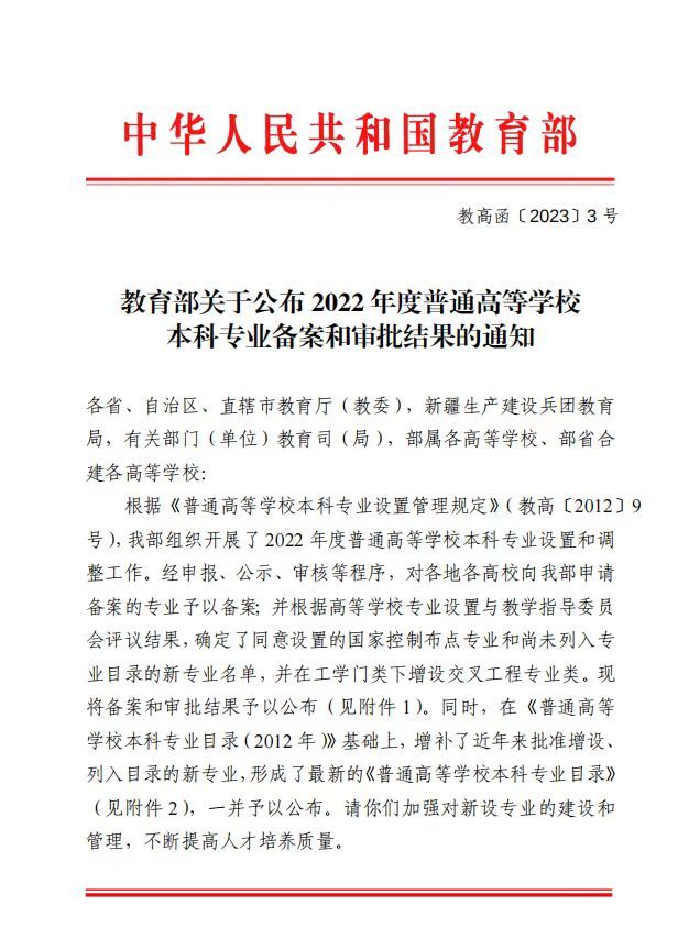 近日,根据《教育部关于公布2022年度普通高等学校本科专业备案和审批结果的通知》(教高函〔2023〕3号)文件,开元集团网站获批新增设人工智能、制药工程、大数据管理与应用、产品设计4个新专业。至此,开元集团网站学科门类增至工学、理学、文学、管理学、经济学、艺术学等6个学科门类。