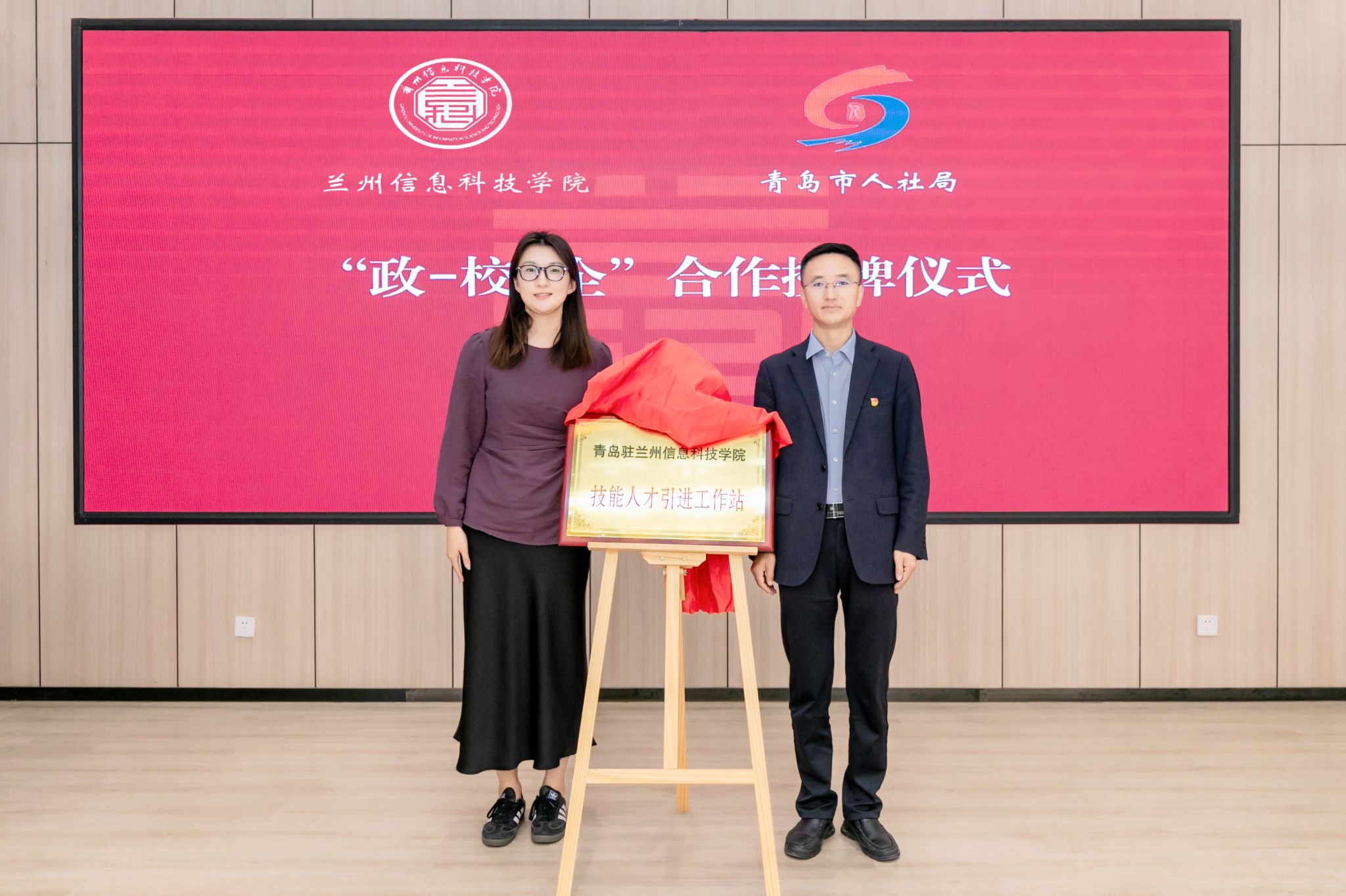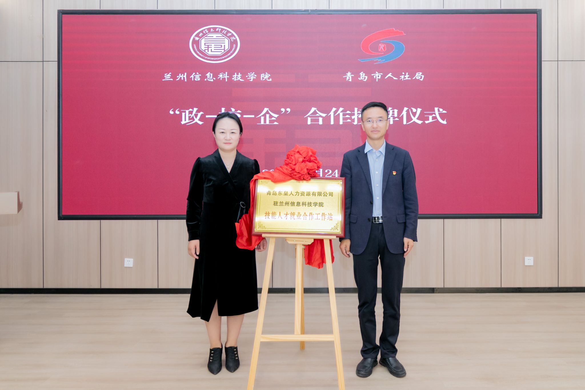 随后,朱明敏与赵津怡代表双方签订了《政-校战略合作协议书》,明确合作内容与合作前景,就组织校园招聘、共建产业学院等事宜建立互利共赢的长效合作机制。同时,青岛市人社局授牌学校为“技能人才引进工作站”,东皇人力资源有限公司授牌学校为“技能人才就业合作站”,为今后加强联动、多方合作奠定了坚实的基础。