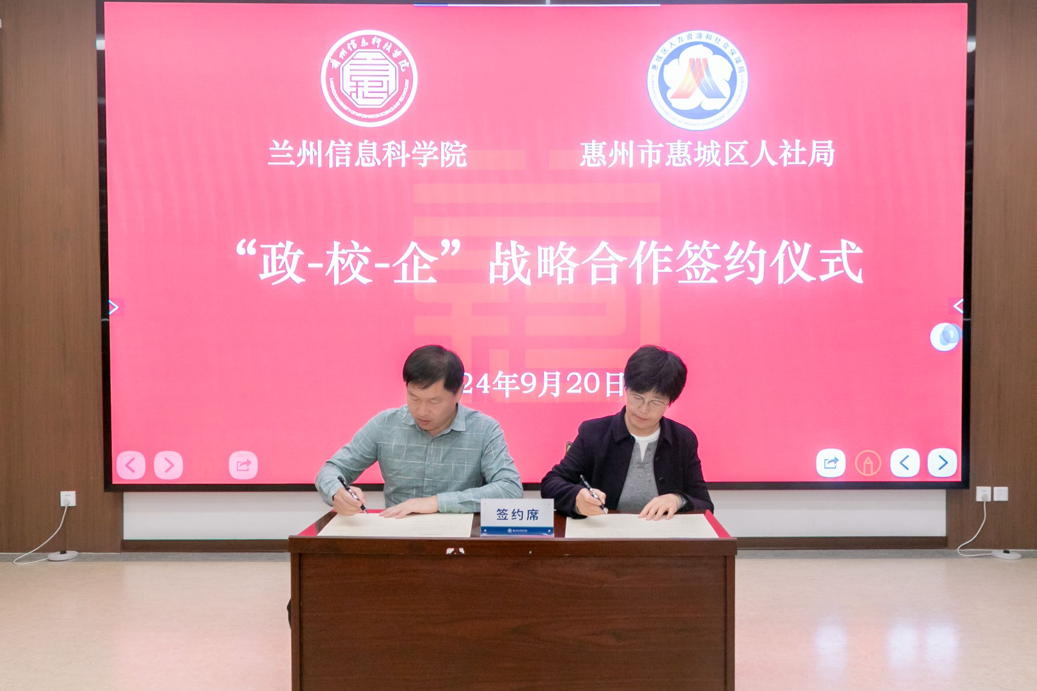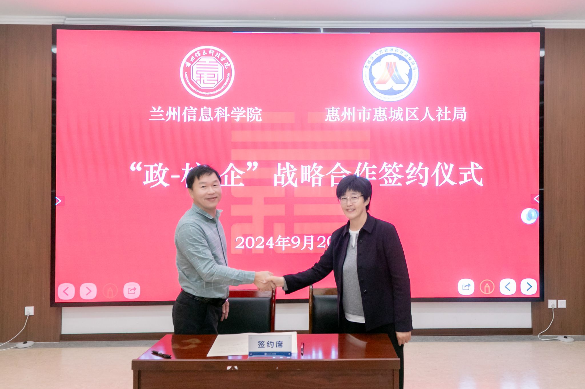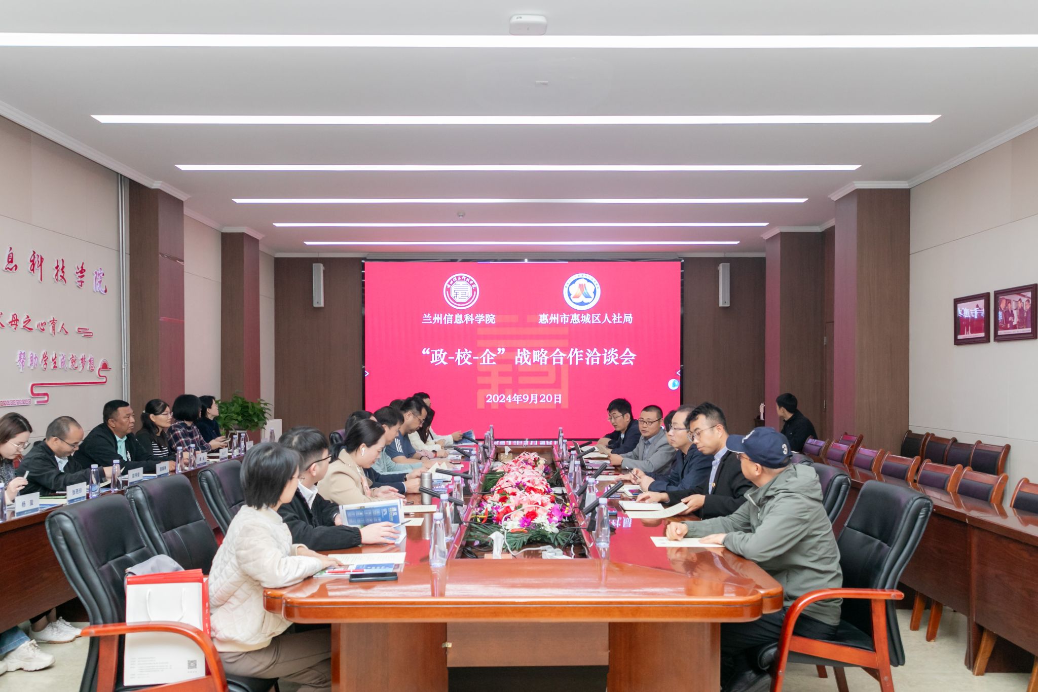 9月20日上午,开元集团网站与广东省惠州市惠城区人力资源和社会保障局举行“政-校-企”战略合作洽谈会议暨签约仪式。校长程兰华出席会议,各二级学院发展中心及就业服务中心相关人员参加。
