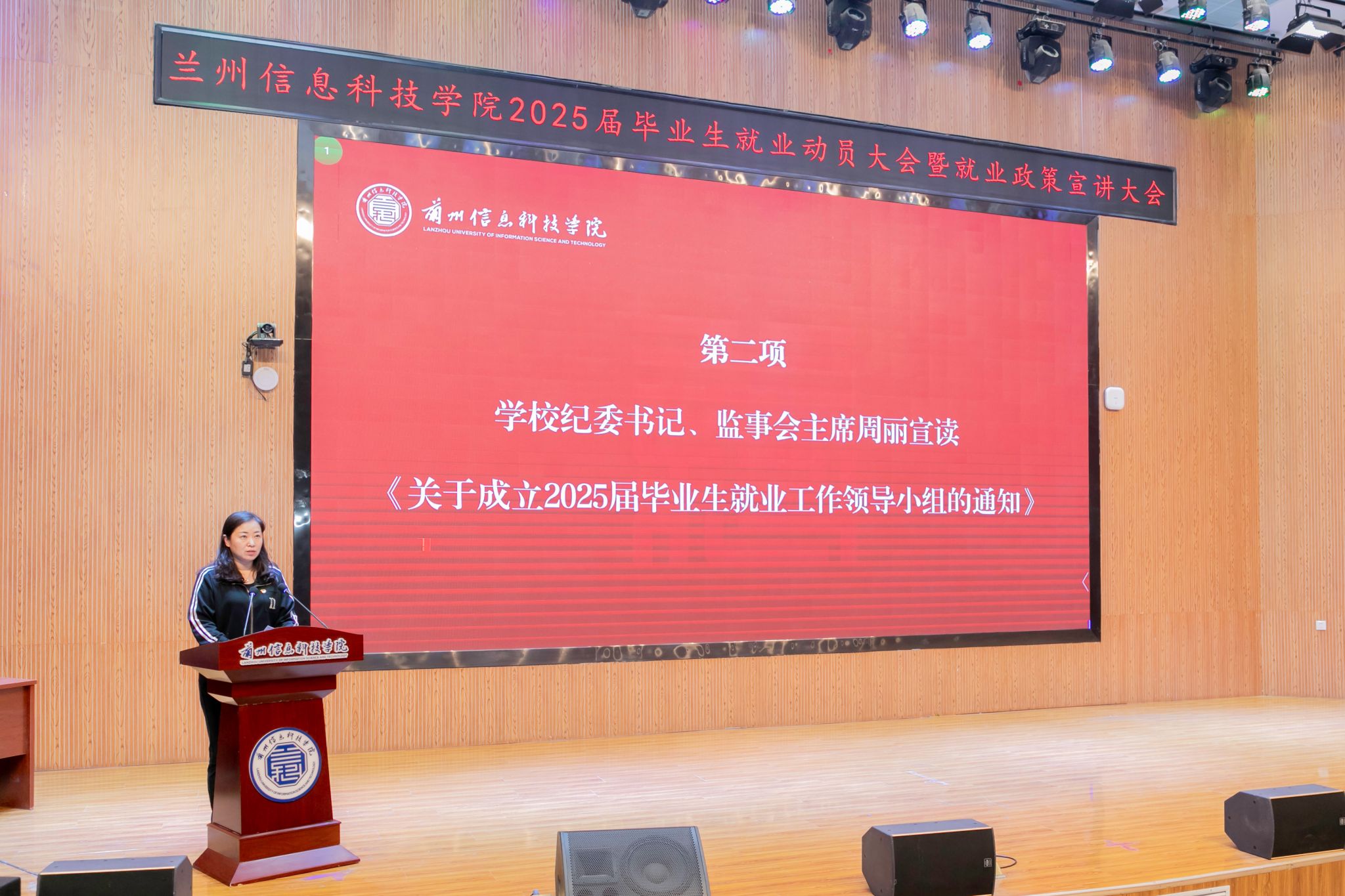 周丽宣读了《关于成立2025届毕业生就业工作领导小组的通知》,细化领导小组分工和工作职责,从思想认识、目标实施、服务保障三方面明确工作要求。进一步强化了对就业工作的组织领导和统筹协调,凝聚就业工作合力,确保学校就业局势稳定。