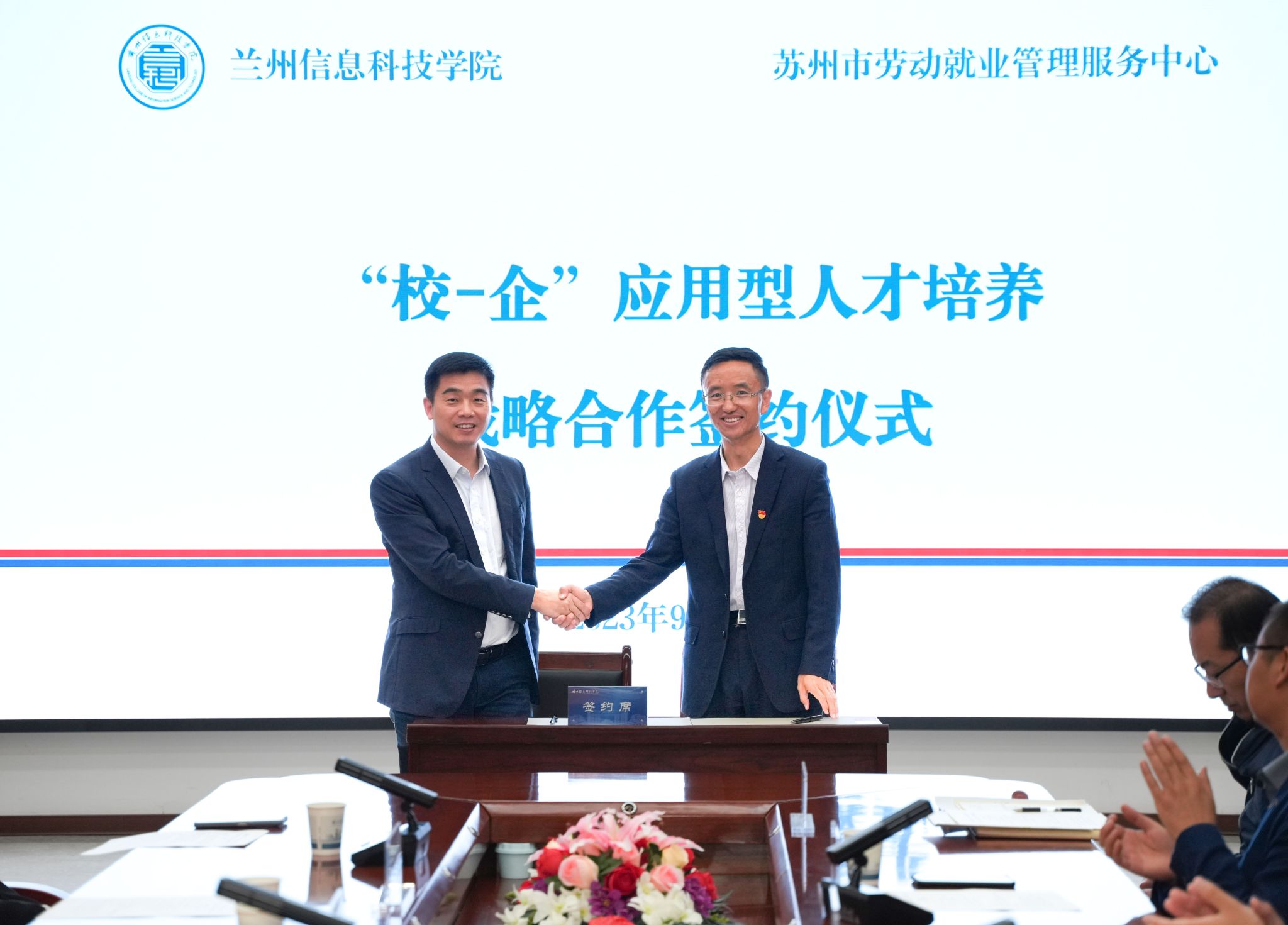 会上,苏州市劳动就业管理服务中心与开元集团网站签署《政校合作协议》,世界500强企业京东集团全资子公司江苏京迅递供应链管理有限公司、中国500强企业苏州长光华芯光电技术股份有限公司、上市企业博众精工科技股份有限公司、上市企业苏州仕净科技股份有限公司与学校签订《校企合作战略框架协议》。