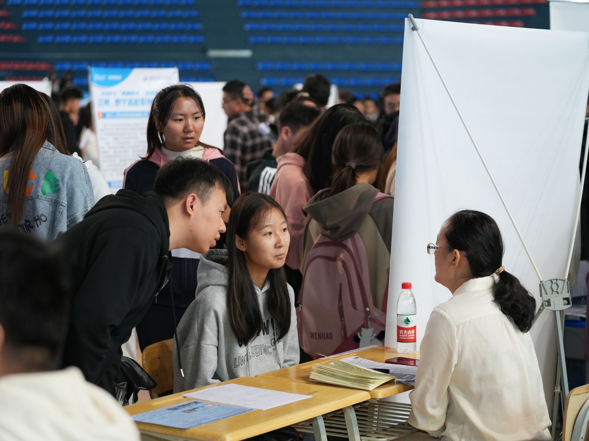 招聘现场,人头攒动、气氛活跃,招聘活动井然有序,毕业生们手持精心准备的简历,与心仪企业的HR就工作内容、薪资待遇、晋升通道等进行了交流与咨询,用人单位面向毕业生也详细介绍了企业文化特点和岗位工作需求,并针对工作环境、薪资福利及发展前景等与毕业生们沟通洽谈。