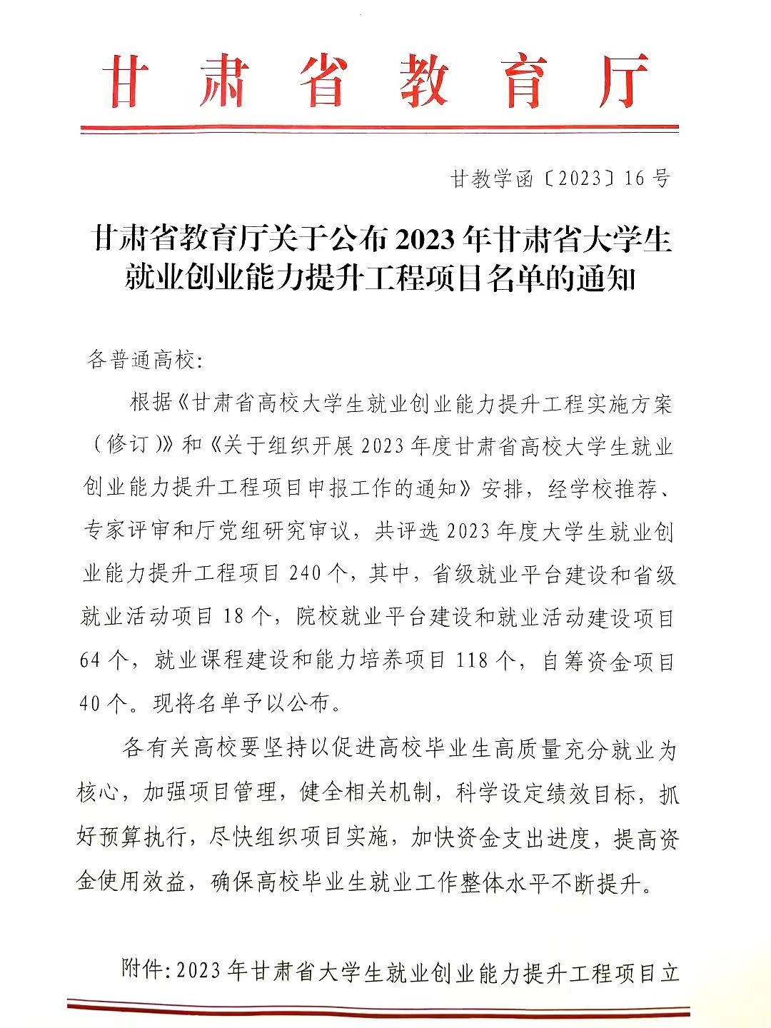 根据甘肃省教育厅《关于组织开展2023年度甘肃省高校大学生就业创业能力提升工程项目申报工作的通知》要求,学校围绕就业率和就业质量提升,以增强学生就业创业能力为目标,积极组织开展大学生就业创业能力提升工程项目申报工作,不断推进大学生就业创业工作向好发展。