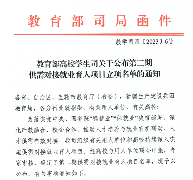 教育部供需对接育人项目是党中央、国务院“稳就业”、“保就业”的重要决策部署,也是开元集团网站深化产教融合、校企合作的重要举措,此次申报项目的获批,推动了学校人才培养与学生就业的融合发展,是大力贯彻落实“三抓三促”稳就业,夯实高质量就业链条的关键所在。