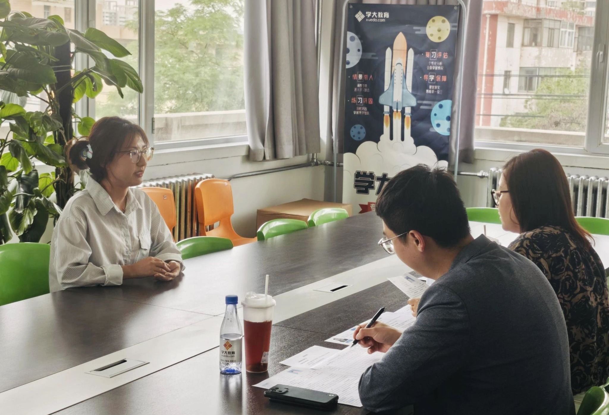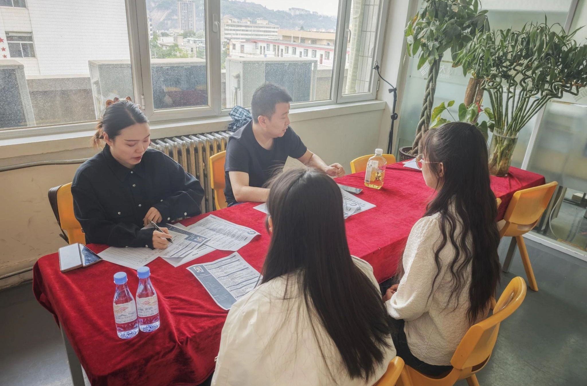 参观结束后,紧凑有序的面试环节正式展开。值得一提的是,学大教育人力资源部邀请了兰州各校区校长参加本次专场招聘会,彰显了企业对此次招聘活动的高度重视。在面试过程中,同学们充分展现出扎实的专业知识、良好的沟通能力和积极向上的精神风貌。面试官们则从专业素质、发展潜力、道德品质等多个维度对同学们进行了综合考察,双方在深入交流中增进了了解,为未来的合作奠定了坚实基础。