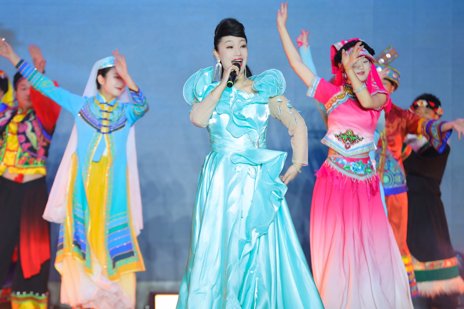 文化滋润,高雅艺术浸人心。启动仪式后,一场跨越地域与民族的高雅文化艺术汇演点燃全场热情。来自藏族、维吾尔族、蒙古族等民族的舞者们身着盛装,共同演绎《民族大联欢》;国家级非物质文化遗产马头琴表演,将蒙古草原的广阔和自由演绎的淋漓尽致;舞蹈《羯鼓韵》震撼登场,鼓点如马蹄般奔腾,舞姿似雄鹰展翅,将黄土高原的豪迈与丝绸古道的悠远完美交融;阿宝模仿秀、藏族舞蹈《绽放》、杂技《节节高》、藏歌对唱《我们好好爱》、歌伴舞《共筑中国梦》更是将现场气氛推向高潮,歌声与舞姿交相辉映,绘就了一幅绚丽多彩的民族团结画卷。