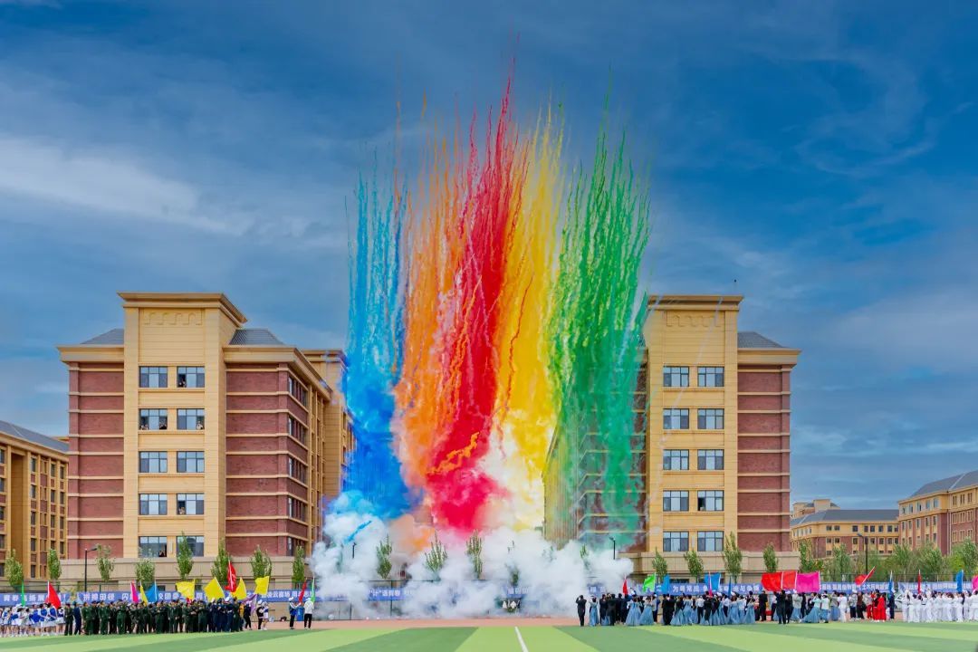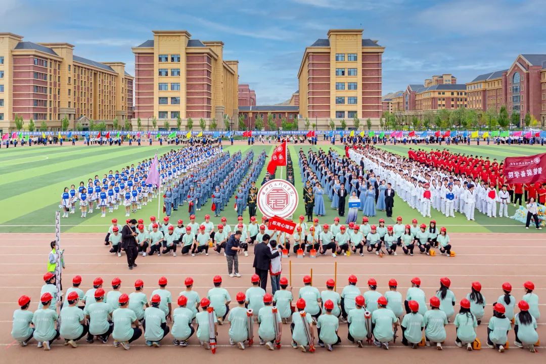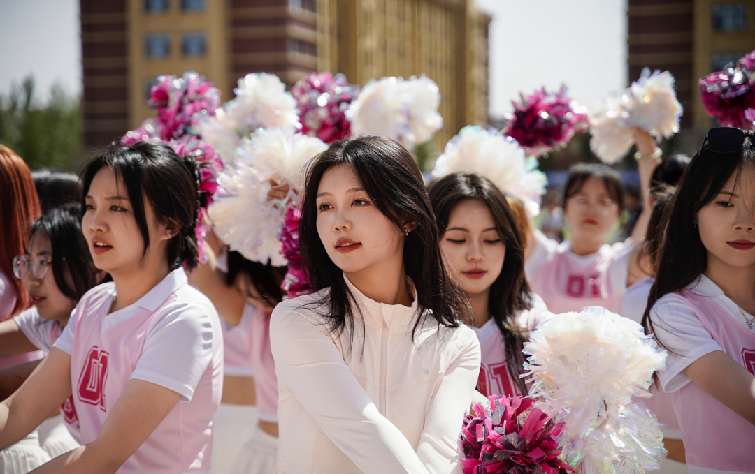 博学笃行、塑体铸魂,他们年轻朝气,眉宇间尽展少年雄健,社团联合会组成的三百人跆拳道队伍,行云如水、刚劲有力;手中花球翻飞,轻盈的舞步、动感的节拍诠释着飞扬青春与无限美好;整齐划一的扇子,犹如流转的诗意,轻轻摇曳,诉说着红色故事,每一挥都是对传统文化的深情致敬,每一转都是对青春岁月的美好献礼。