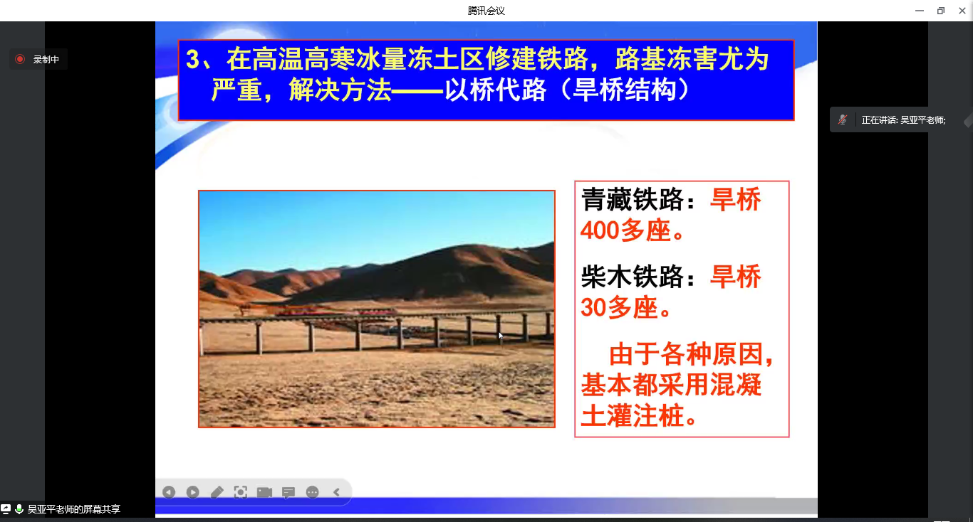 报告以青藏铁路、青海柴达尔至木里地方铁路工程建设项目为背景,结合国内外寒区道路修建过程中遇到的冻害影响及次生问题研究现状,针对寒区旱桥桩基设计、施工及养护中亟待解决的混凝土水化热、冻土区钻孔灌注桩承载力、施工周期与生产工期存在的矛盾等主要问题展开理论研究分析和实践创新应用。重点阐述科研团队在青藏铁路、青海柴达尔至木里地方铁路等工程项目建设中遇到的技术难题及解决方案,将复杂的科学研究用通俗易懂的语言深入浅出地呈现给全校师生。