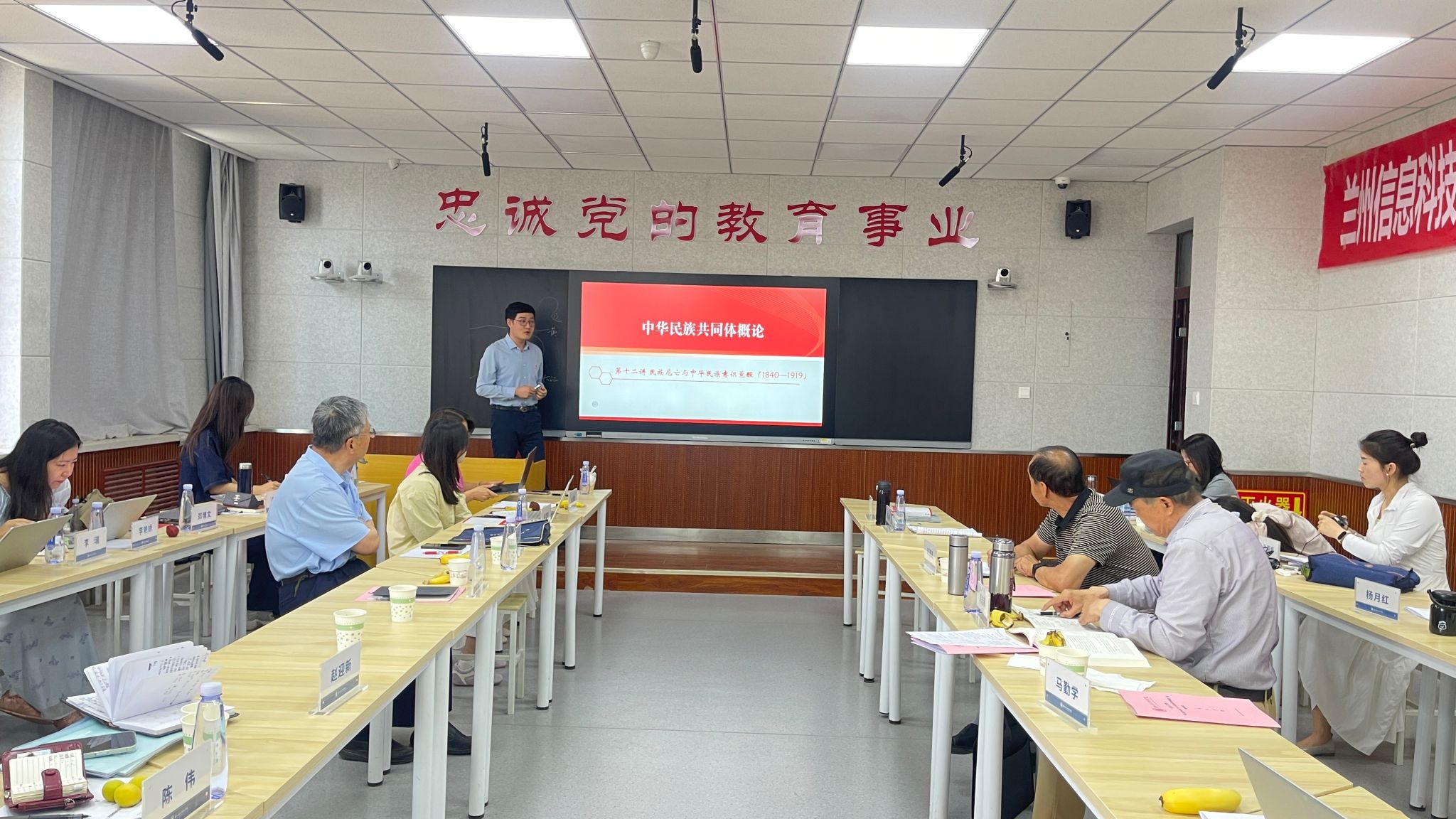 参与活动全体人员集体学习了“习近平总书记在中央民族工作会议上的重要讲话(节选)”和《习近平总书记关于做好新时代党的统一战线工作的重要思想学习读本》(节选)。党委学生工作部部长潘强玉同志从“教育与引导并重,引领学生思想”“鼓励与帮扶为主,加强学业指导”和“重视与培养同行,关注学生发展”等三个方面,向全体思政课教师介绍了我校近年来学生民族工作的经验及主要做法。“沙龙活动”邀请了西北师范大学马克思主义学院党史党建研究中心副主任、中国近现代史纲要研究所所长、硕士研究生导师闪兰靖教授,西北民族大学中华民族共同体学院副院长栗学钟副教授,分别以《“中华民族共同体概论”课程教学和建设的基本向度》和《树立正确的中华民族历史观—以<中华民族共同体概论>课程为例》为题开展了辅导报告。